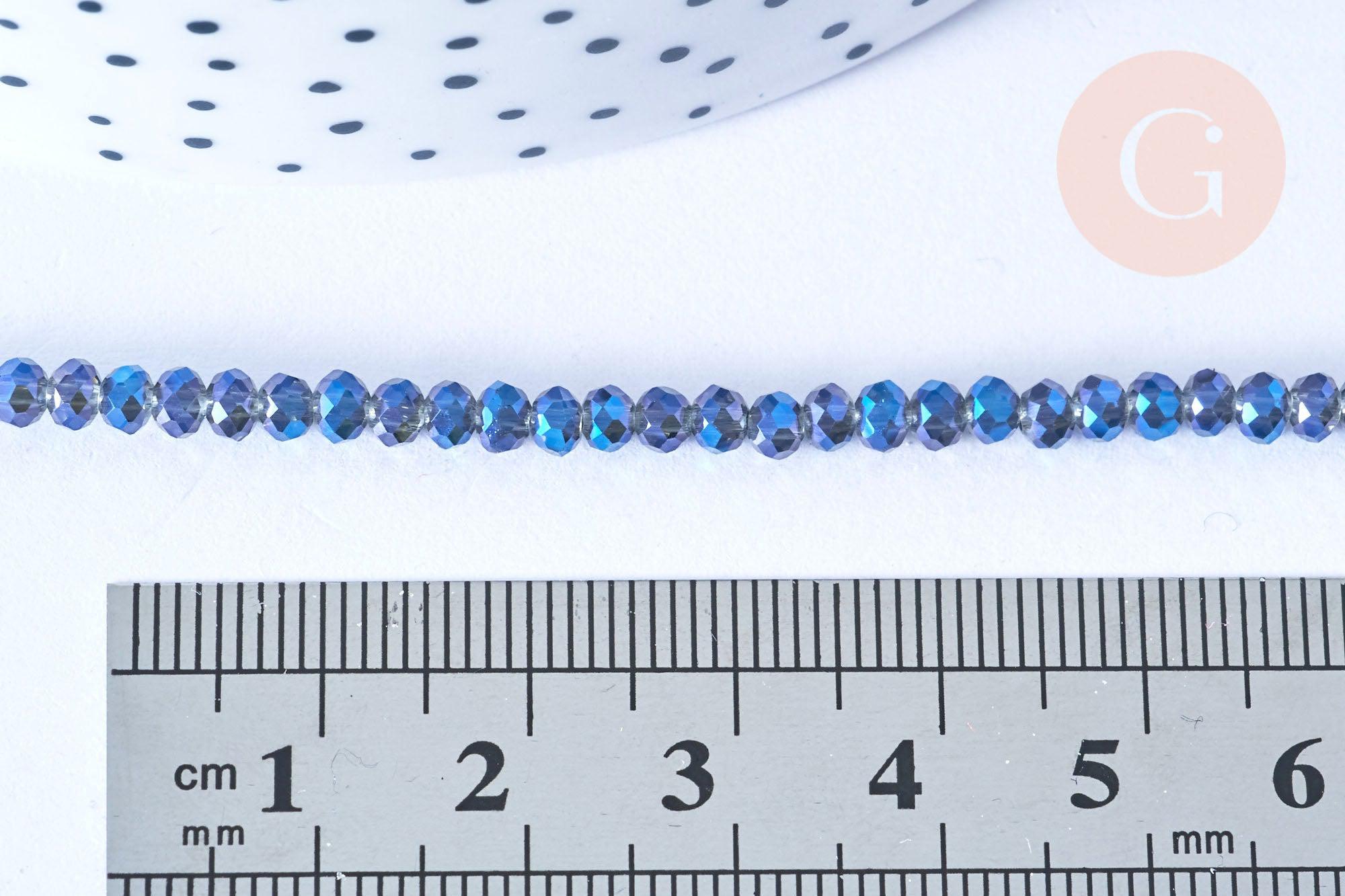 EP-Iridescent blue crystal top beads 3.5x2.5mm, jewelry beads, crystal beads, faceted glass beads, jewelry creation, 25.4cm thread G6752