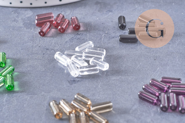 Add a graphic and colorful touch to your DIY creations with this set of glass tube beads in a variety of elegant colors . Their tubular shape and finesse make them ideal for creating modern and lightweight jewelry.