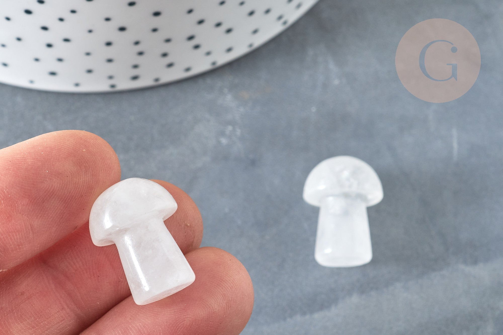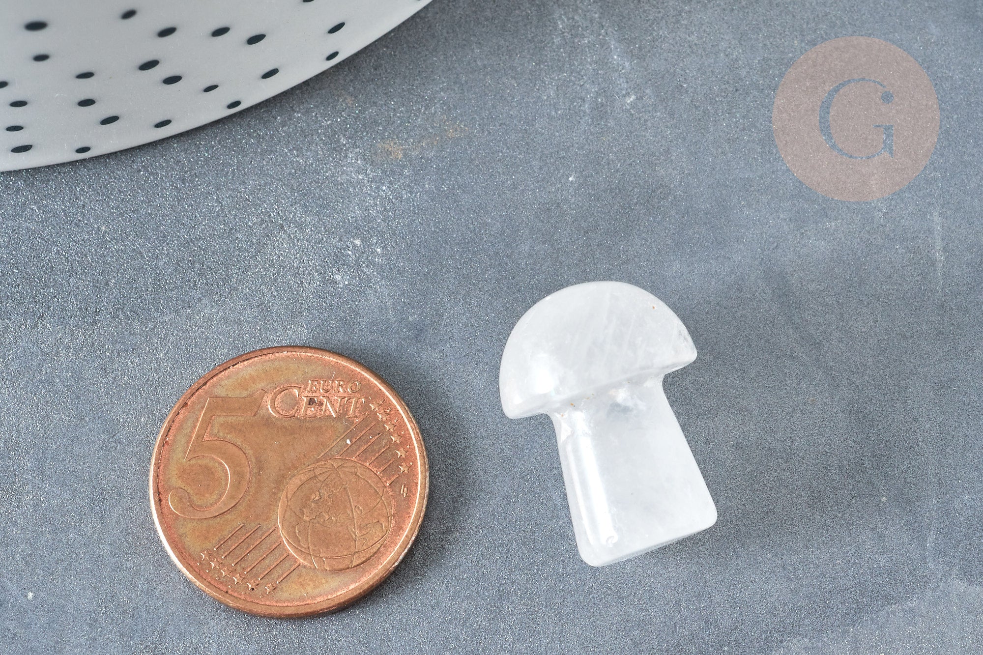 Pierre de massage champignon cristal de roche naturel lithothérapie 20-21mm, cristal de roche, lithothérapie, x1, G7509