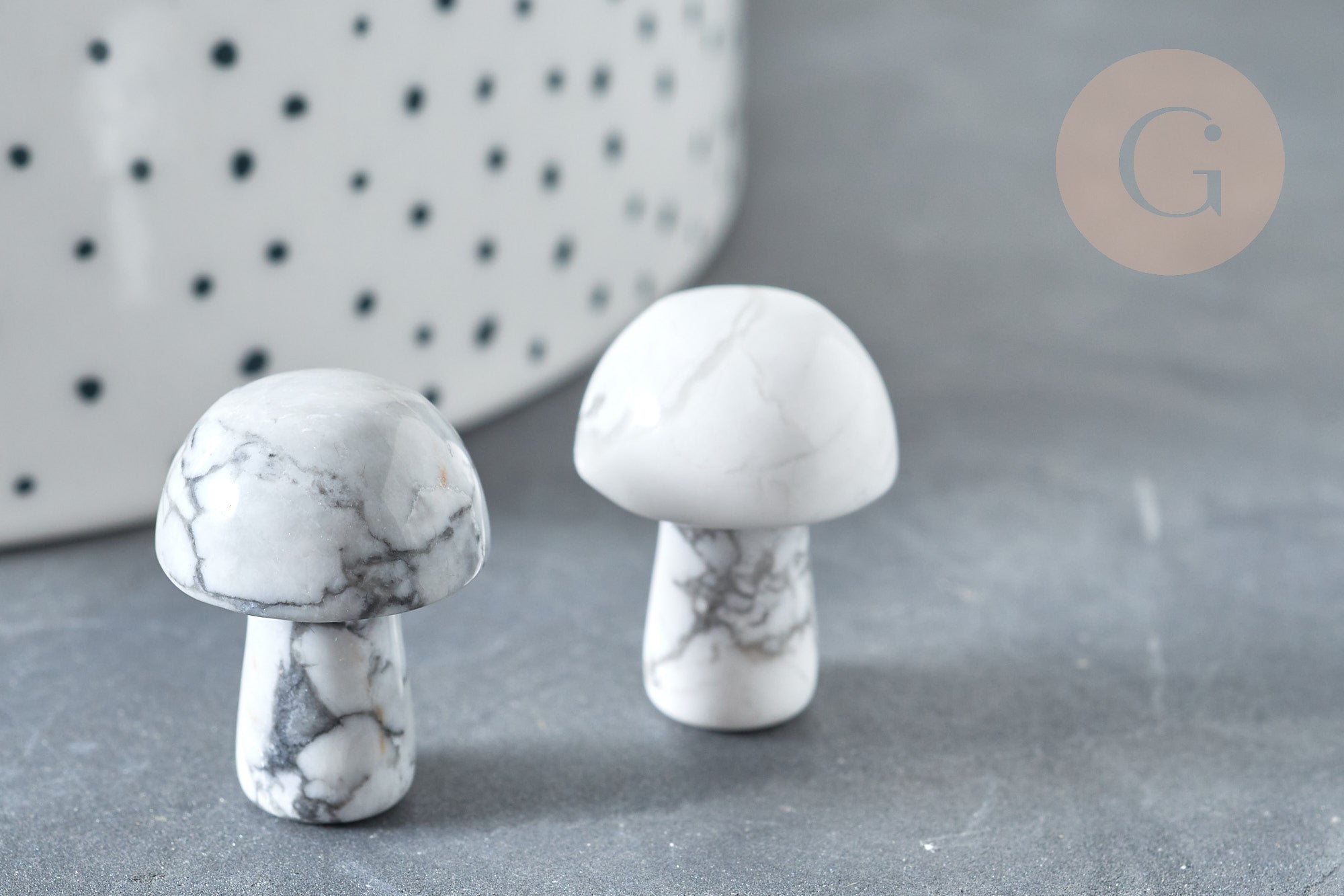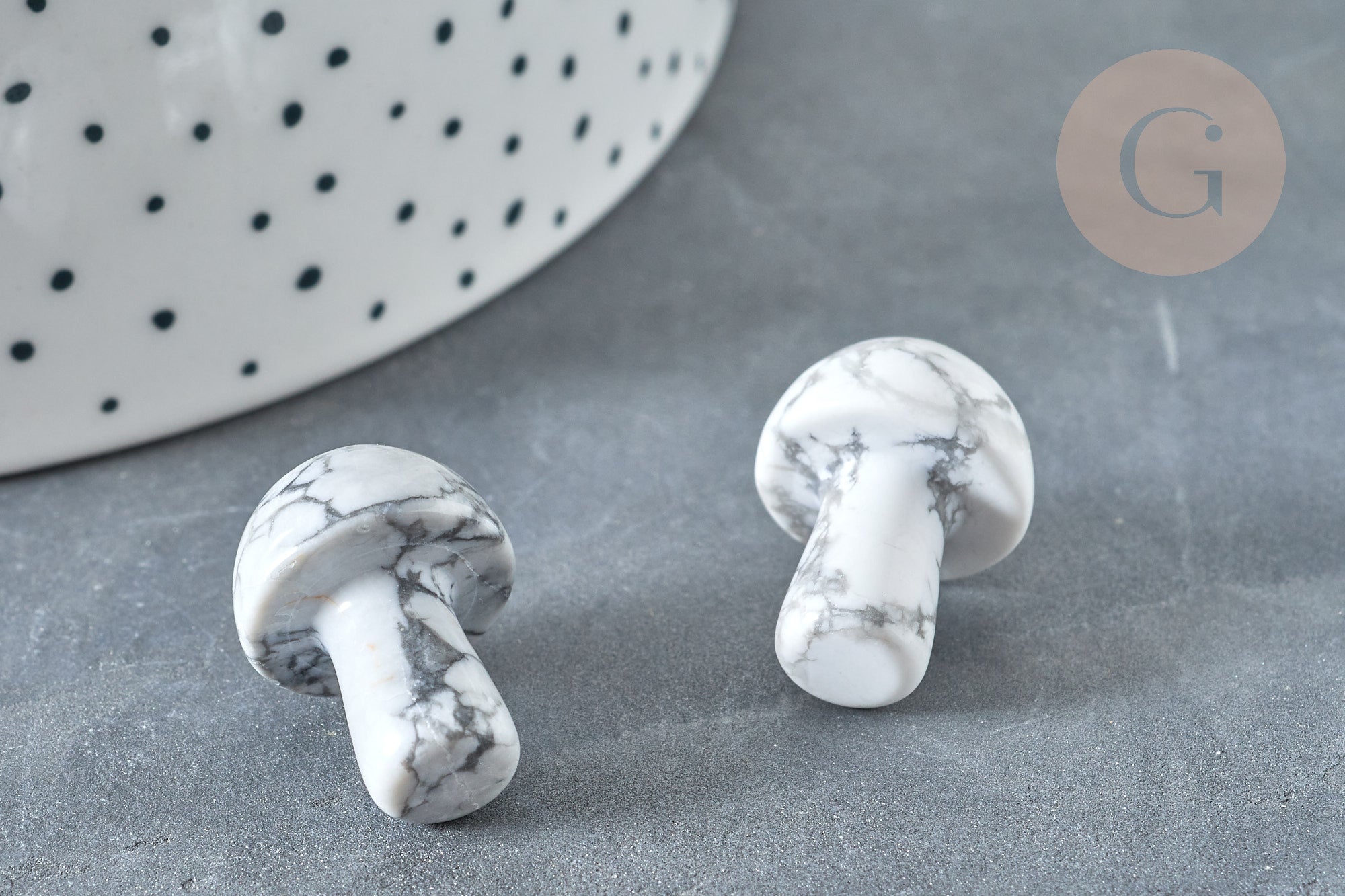 Pierre de massage champignon howlite naturel lithothérapie 21mm, howlite, lithothérapie, x1, G7510