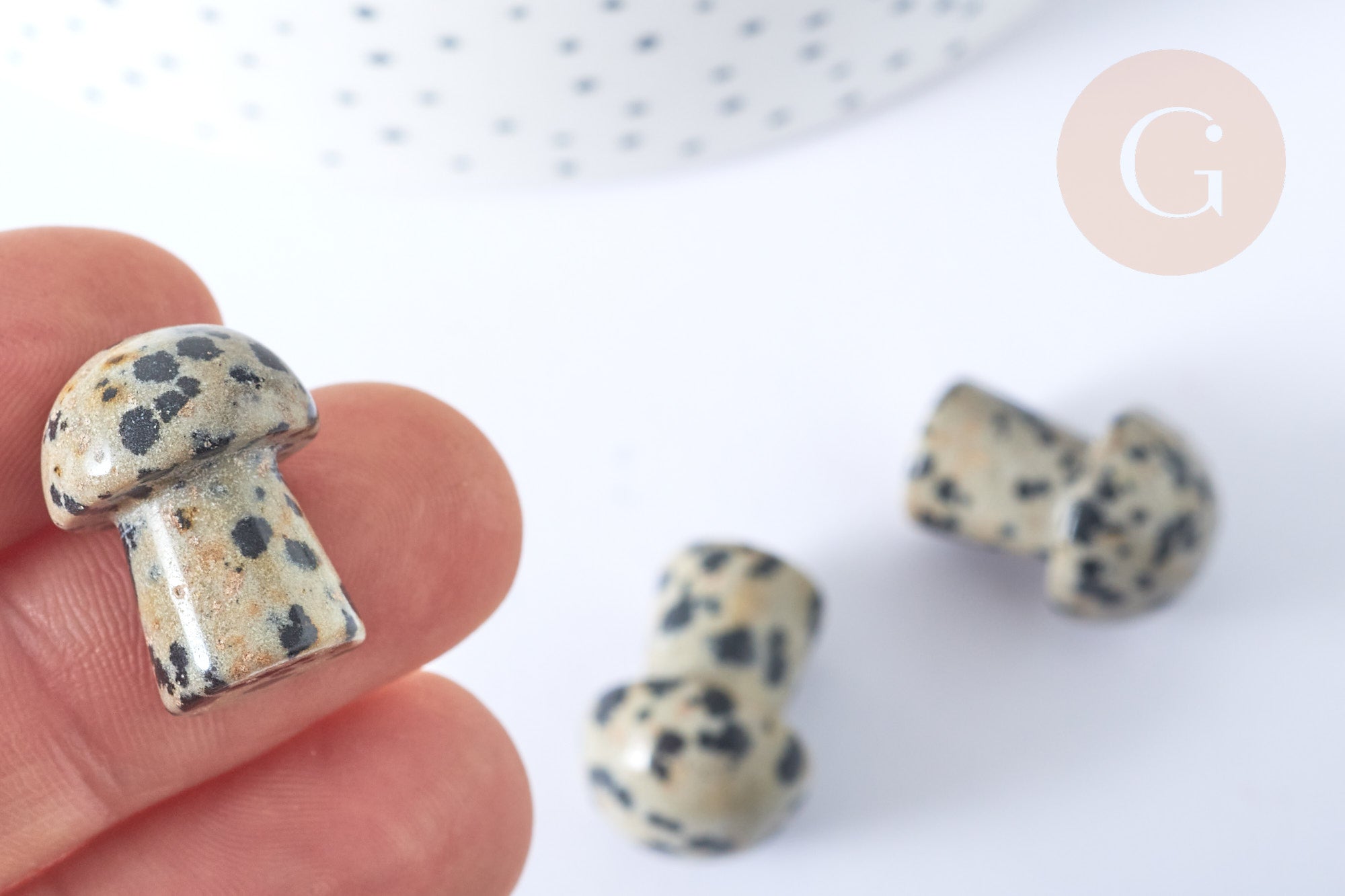 Pierre de massage champignon jaspe dalmatien naturel lithothérapie 20-21mm, pierre lithothérapie, x1 G7912