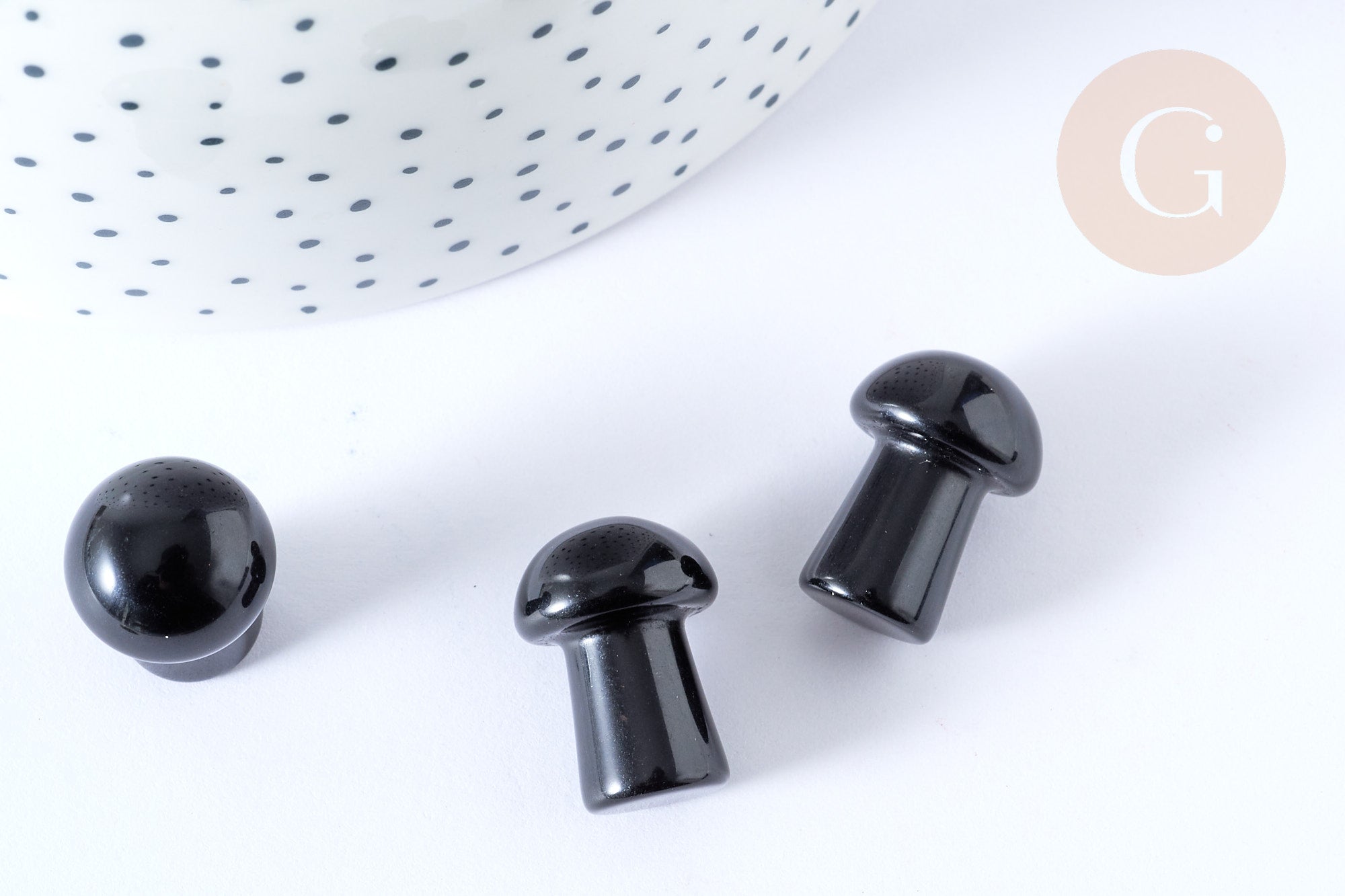 Pierre de massage champignon obsidienne naturelle lithothérapie 20-21mm, pierre lithothérapie, x1, G7550