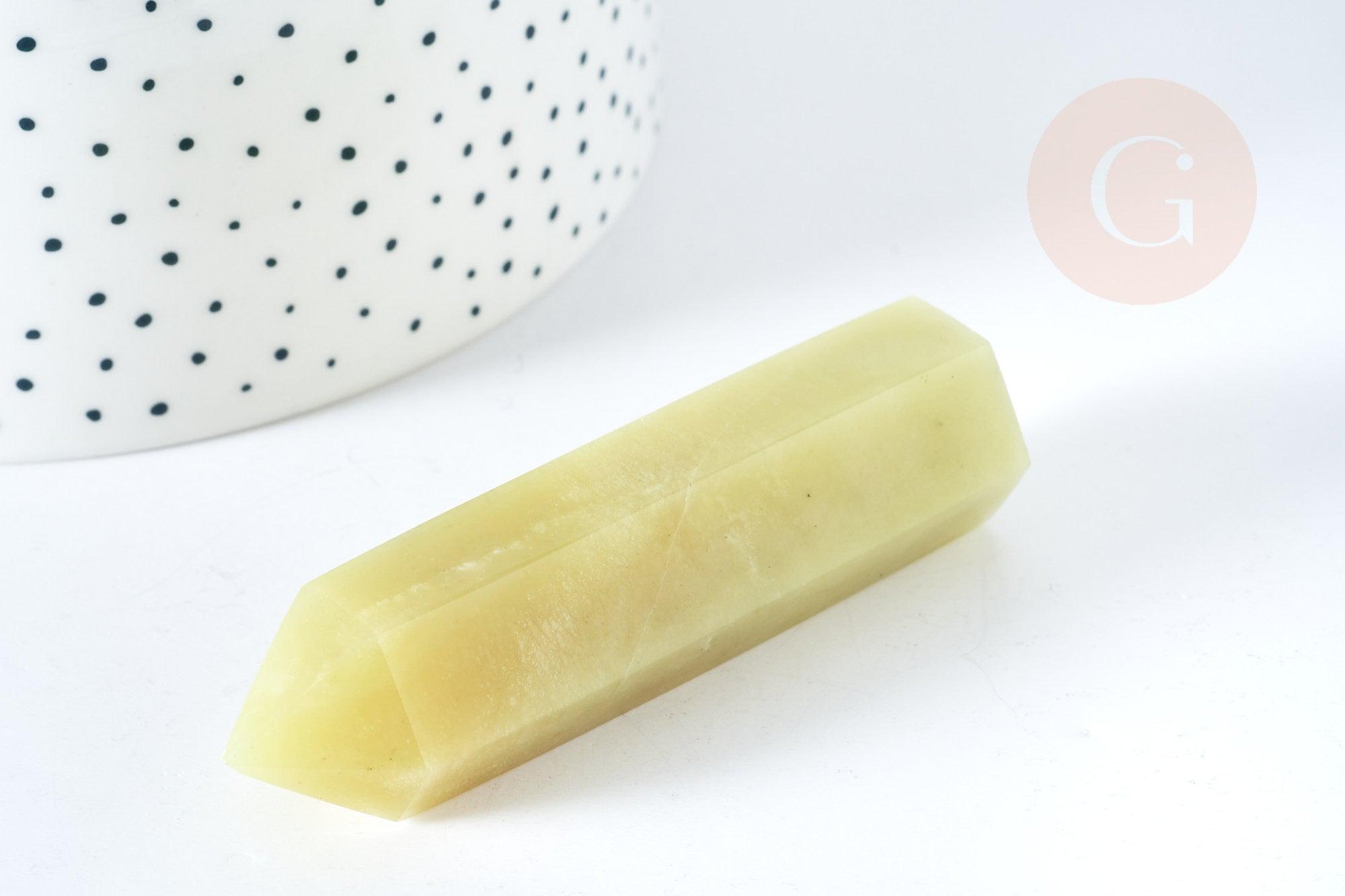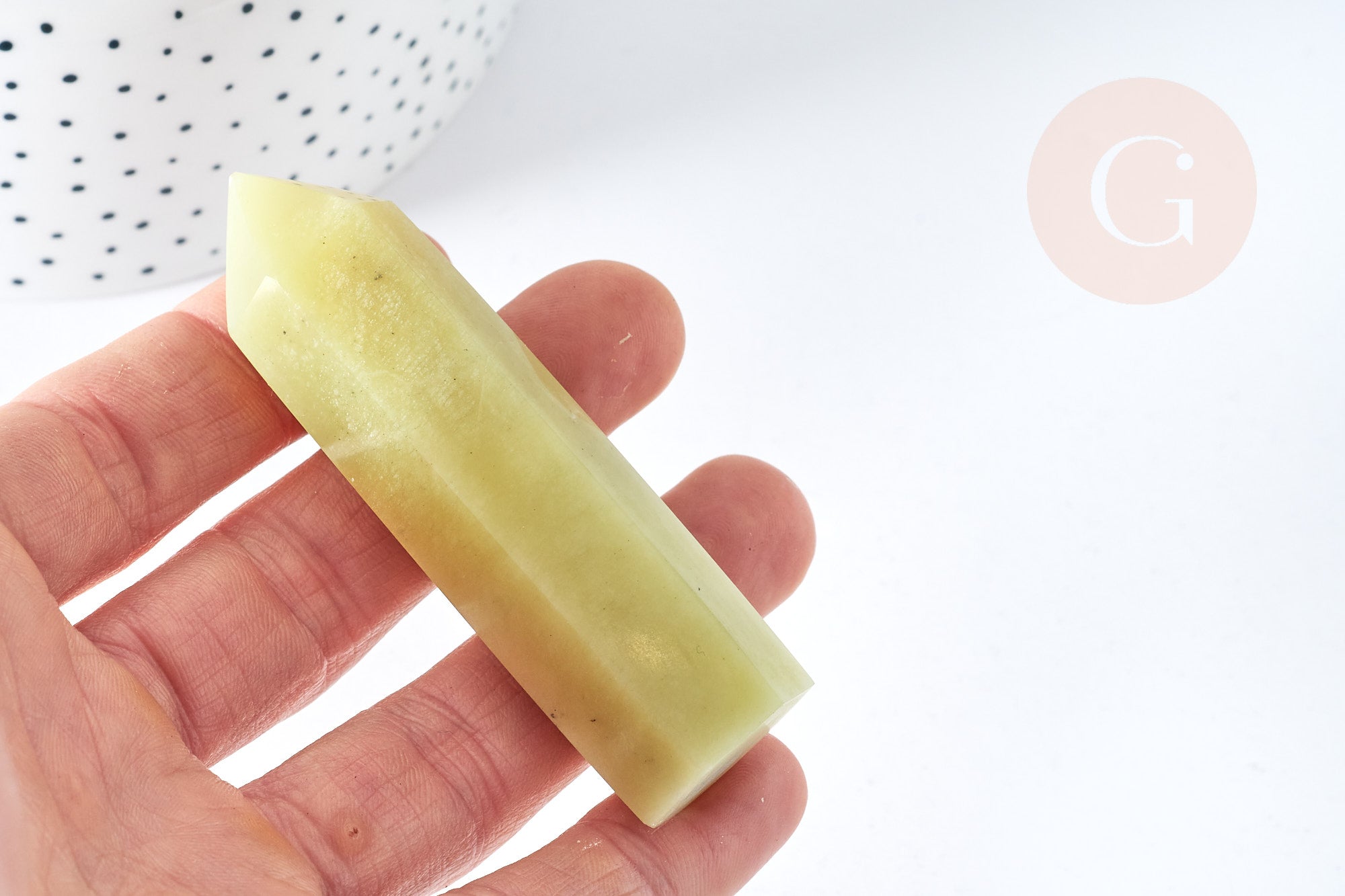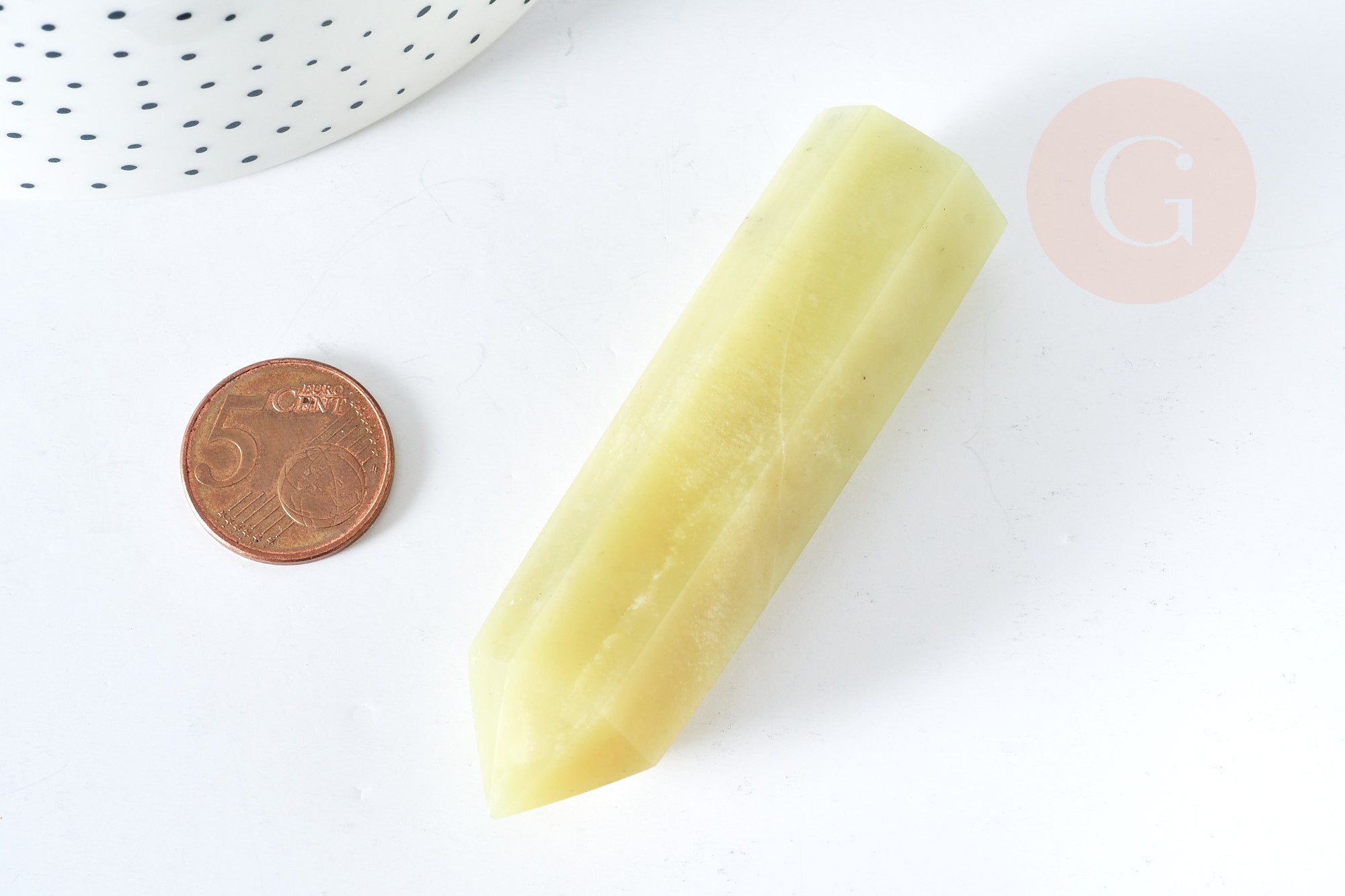 EP TO RENEW-Natural lemon yellow jade point 70-80mm, natural stone lithotherapy session, piece G8409