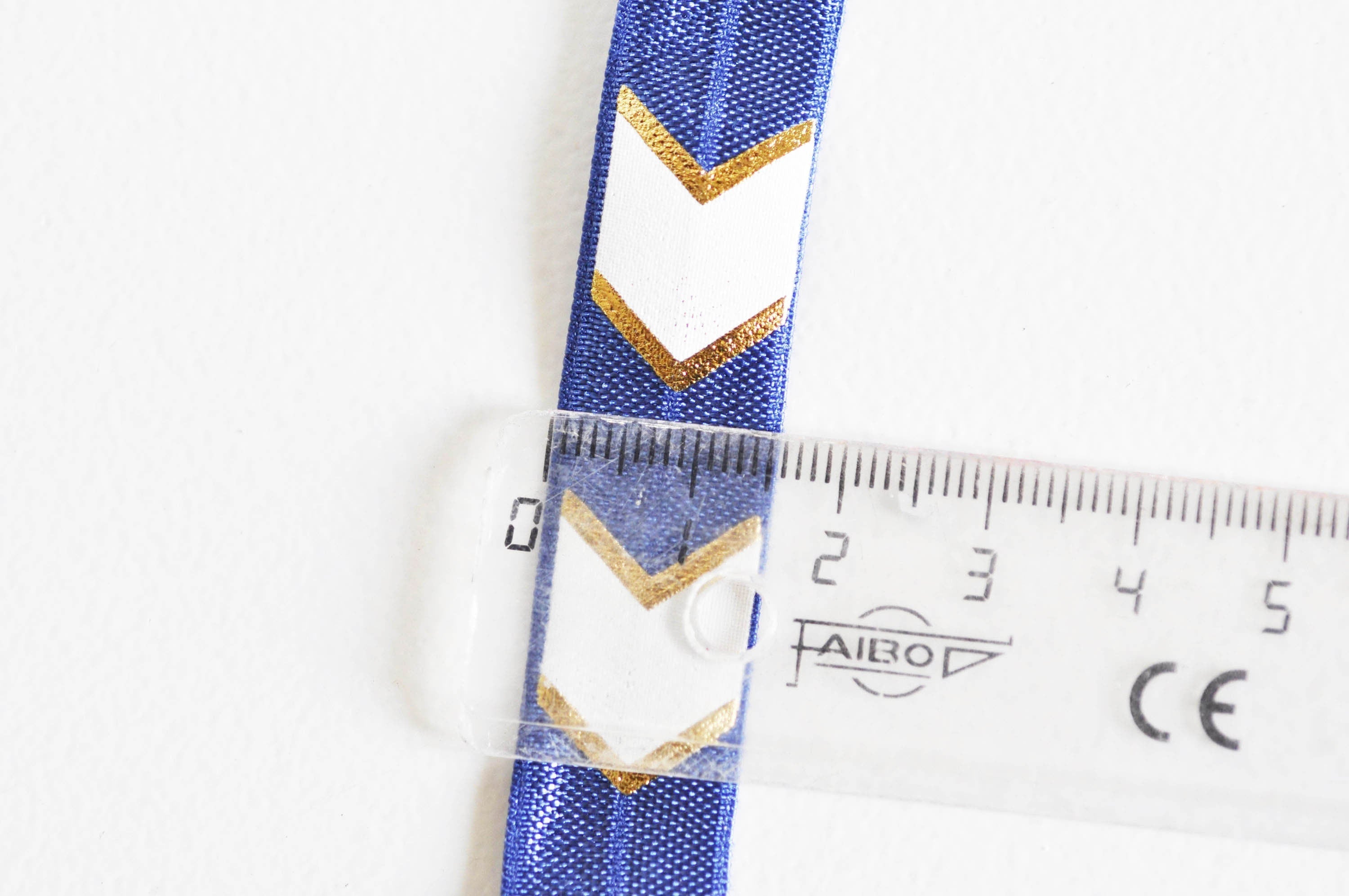 EP Elastic ribbon chevron pattern blue gold EFJF, jewelry making, EVJF bracelet, wedding ribbon, scrapbooking, 16mm, 1 meter-G1572