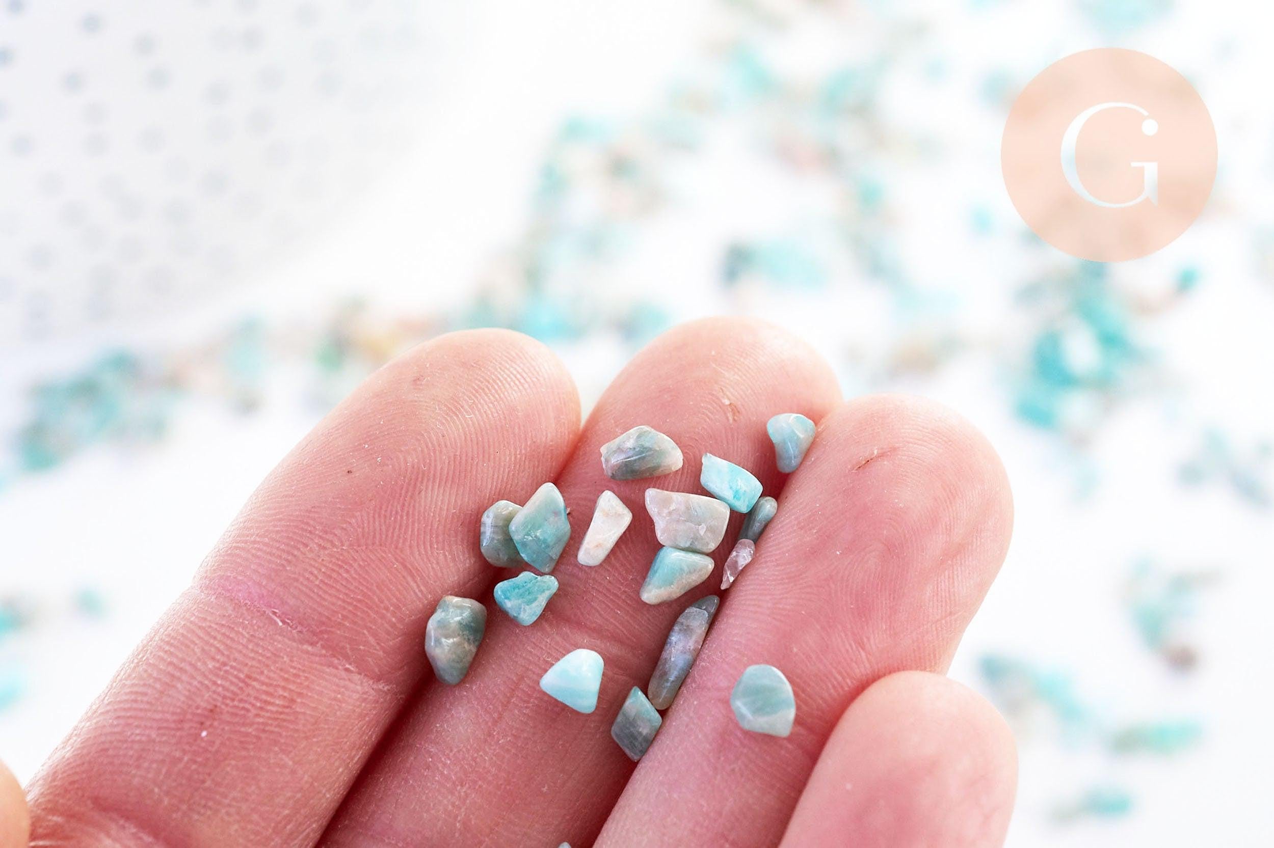 Natural raw rolled blue green amazonite sand , lithotherapy, amazonite chips, jewelry creation .