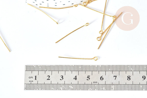 Tiges tête boucle fer doré 30mm, x10 grammes (G8190)