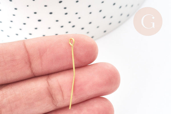Discover these gold-plated iron loop-headed rods to create costume jewelry. They are an essential accessory for designing pendants, threading beads and stones.