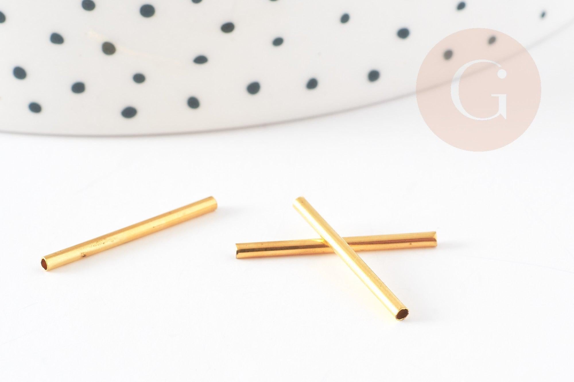 The set of 50 straight round tubes in golden brass 3.8gr 20mm are essential for creating elegant and refined jewelry. This set of 50 golden colored tubes is perfect for your creative projects.