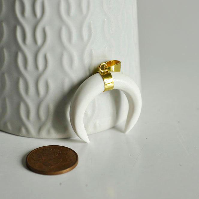 White Turquoise Moon pendant, jewelry creation, jewelry pendant, stone pendant, turquoise pendant, white turquoise, 32mm Fall for this synthetic white turquoise moon to make very trendy bohemian chic jewelry. Width: 32mm Length 35mm Thickness: 10mm Hole: 4.5x8mm. Other pendants in...