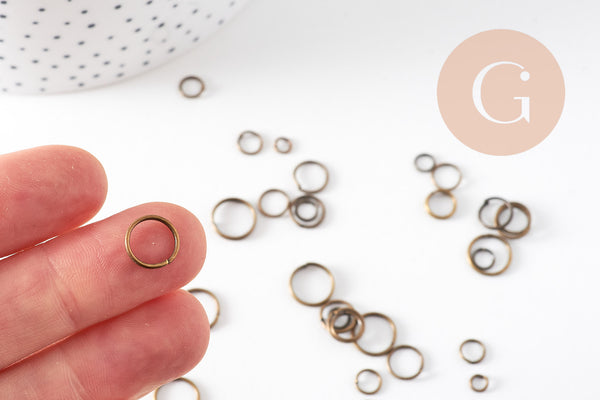 Estas anillas de bronce de diferentes tamaños son ideales para crear bisutería DIY. Puedes ensamblarlas para crear una pieza de joyería vintage y moderna. Para ensamblar tus joyas, las anillas abiertas son perfectas para conectar varios elementos. Se venden en paquetes de 10 gramos (aproximadamente 25 anillas grandes).
