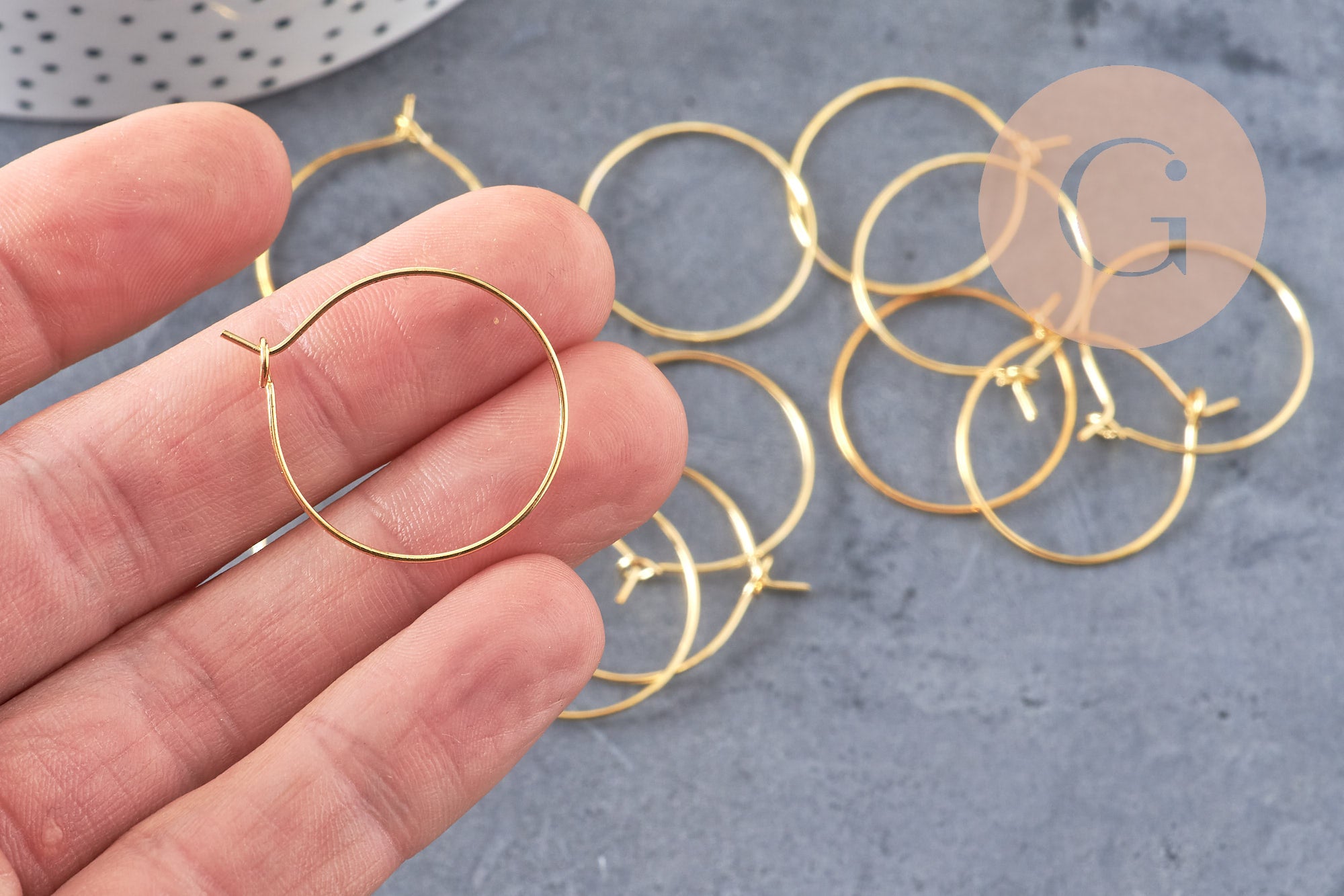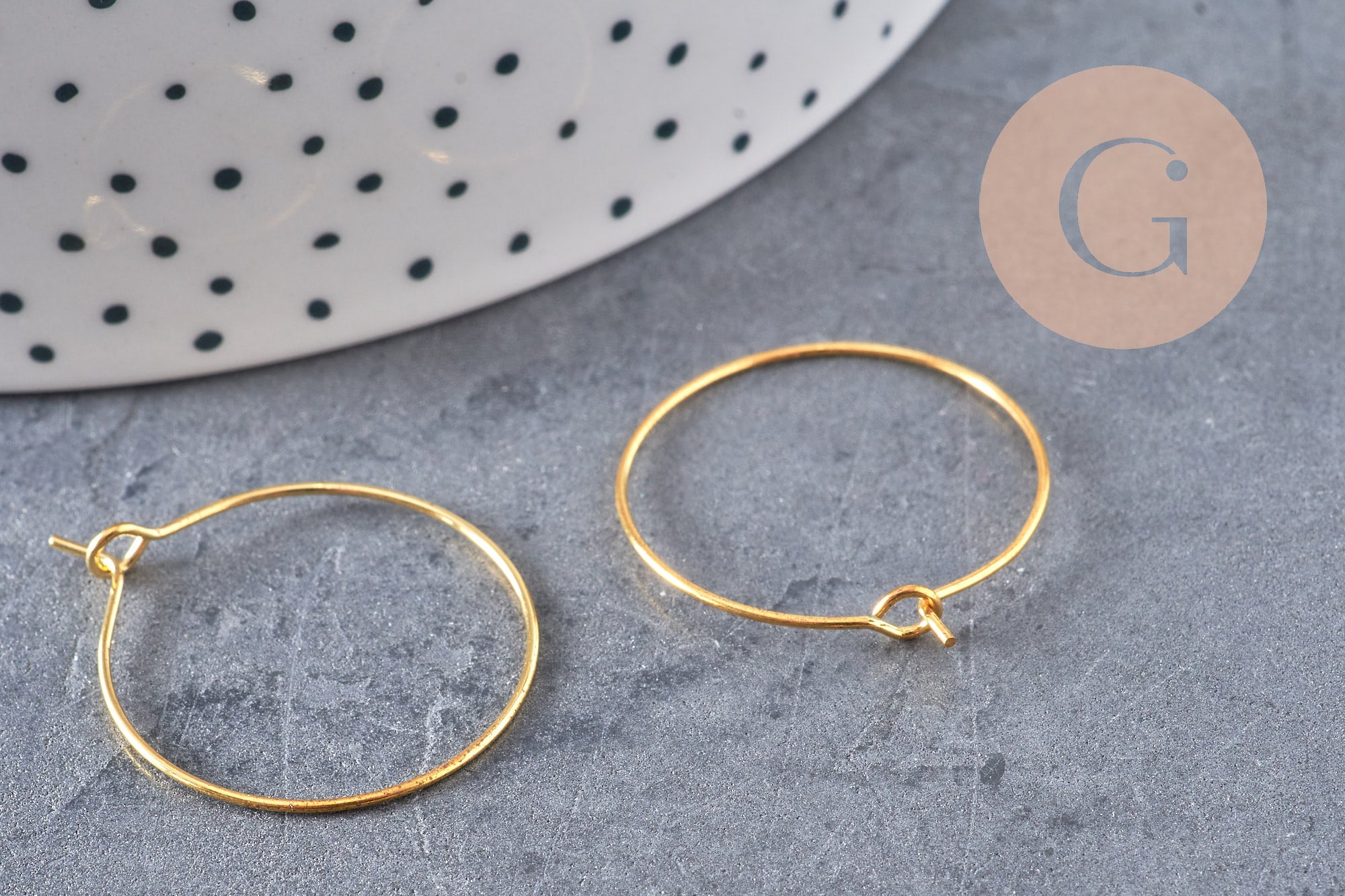 Haga aretes modernos tejiendo pequeñas perlas de agua dulce y piedras preciosas alrededor del anillo con uno de nuestros alambres de cobre dorado. - Personaliza tus aros con cuentas heishi de piedra o polímero, o piedras bicónicas de cristal. Añade un dije y tendrás una joya en tan solo unos minutos.