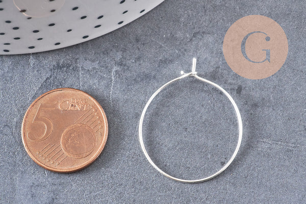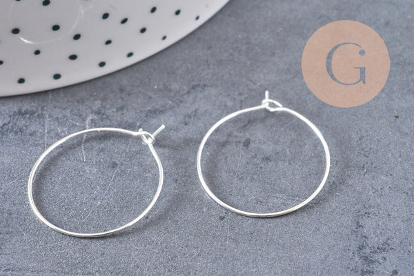 Anneaux créoles métal argenté 25mm, x 20 (G0083)