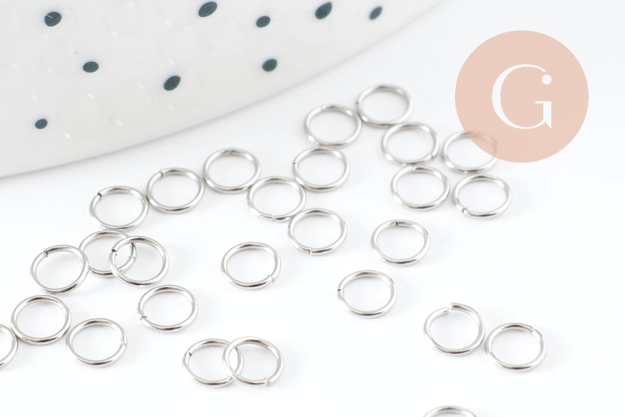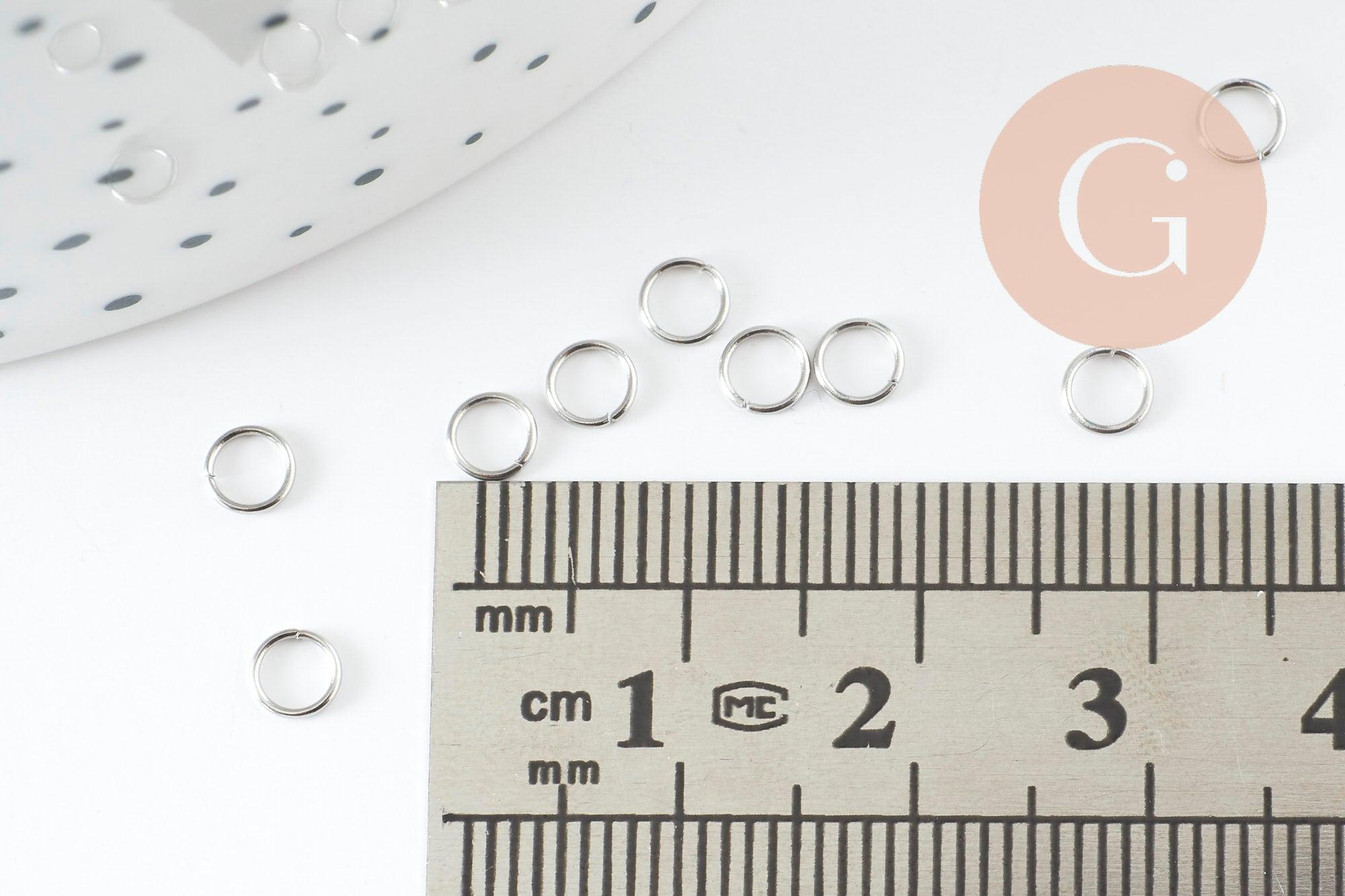 Anneaux de jonction ronds acier 304 platine inoxydable 4mm-0.4mm, x50 (G9393)