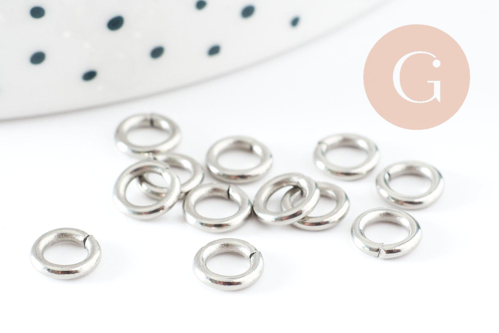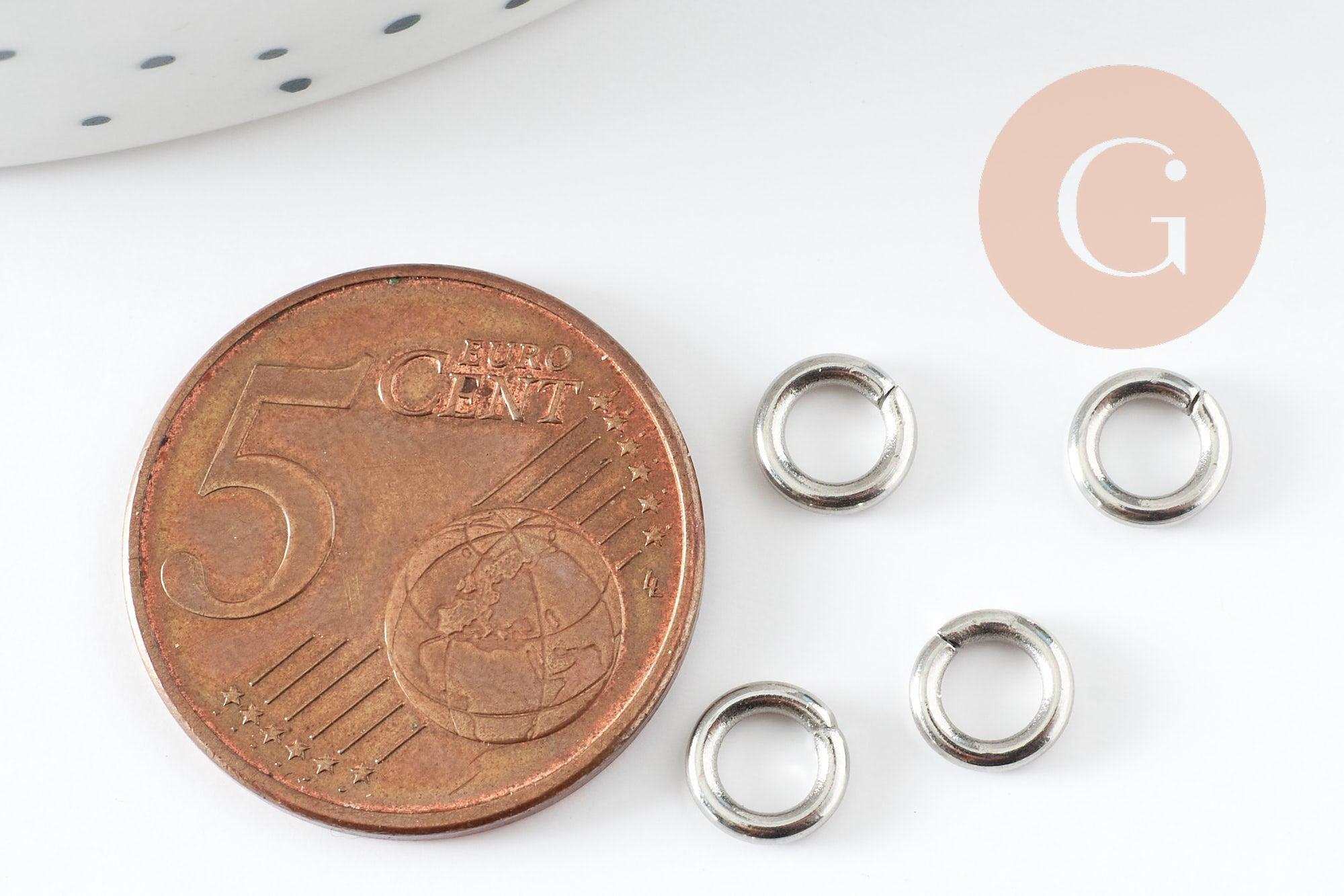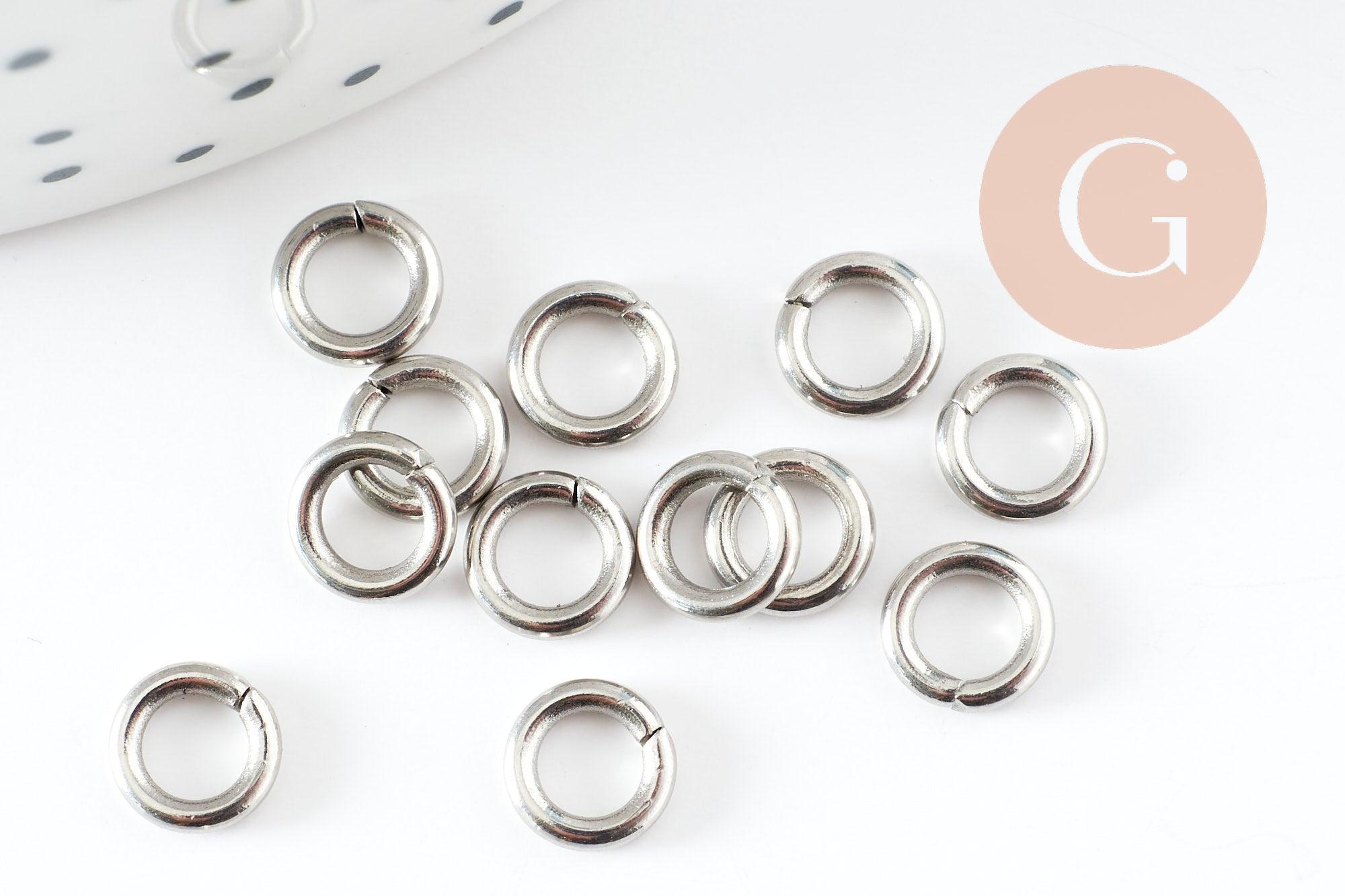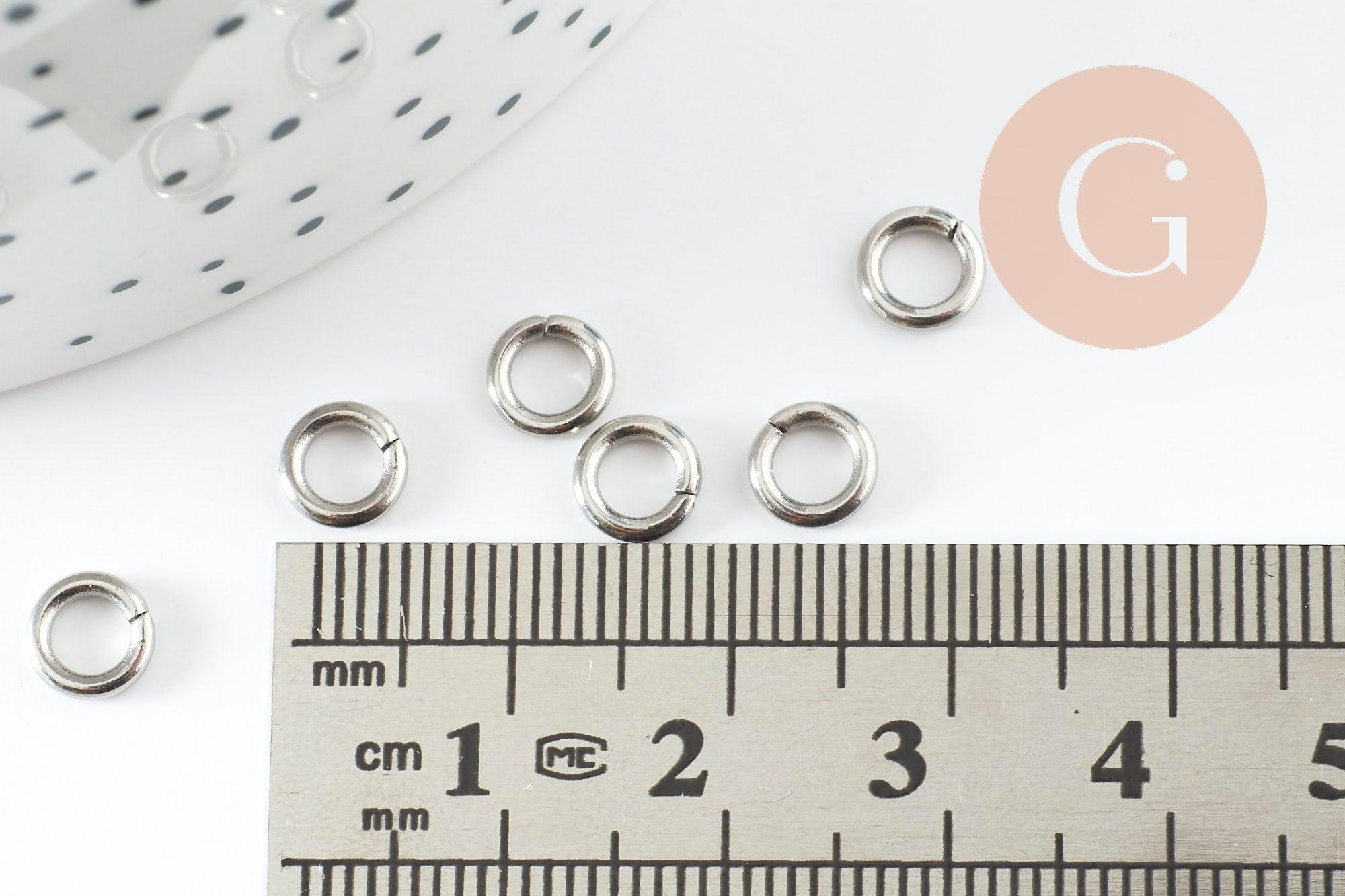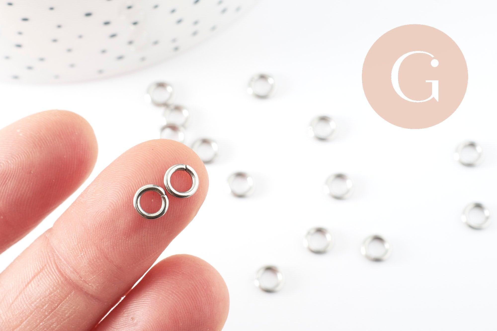 Anneaux de jonction ronds acier 304 platine inoxydable 6mm-1mm, x50 (G9392)