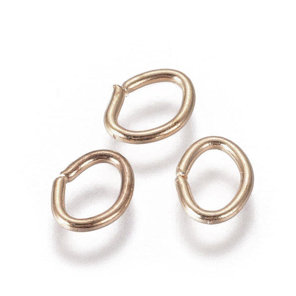 Estas anillas ovaladas abiertas de hierro bañado en oro son esenciales para todas tus creaciones DIY. Su forma ovalada garantiza una mejor sujeción que las anillas redondas tradicionales, ideales para montajes sólidos y profesionales.
