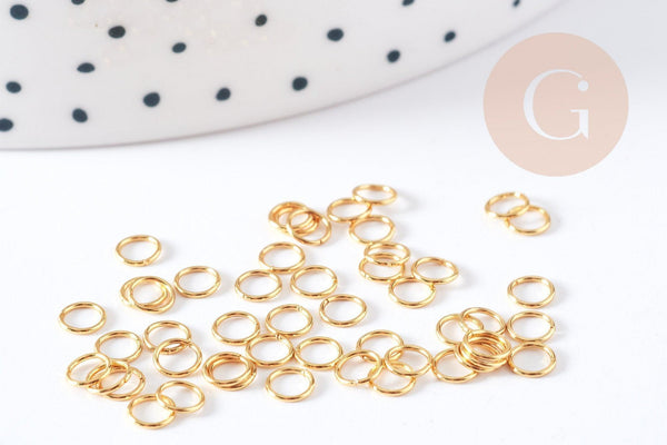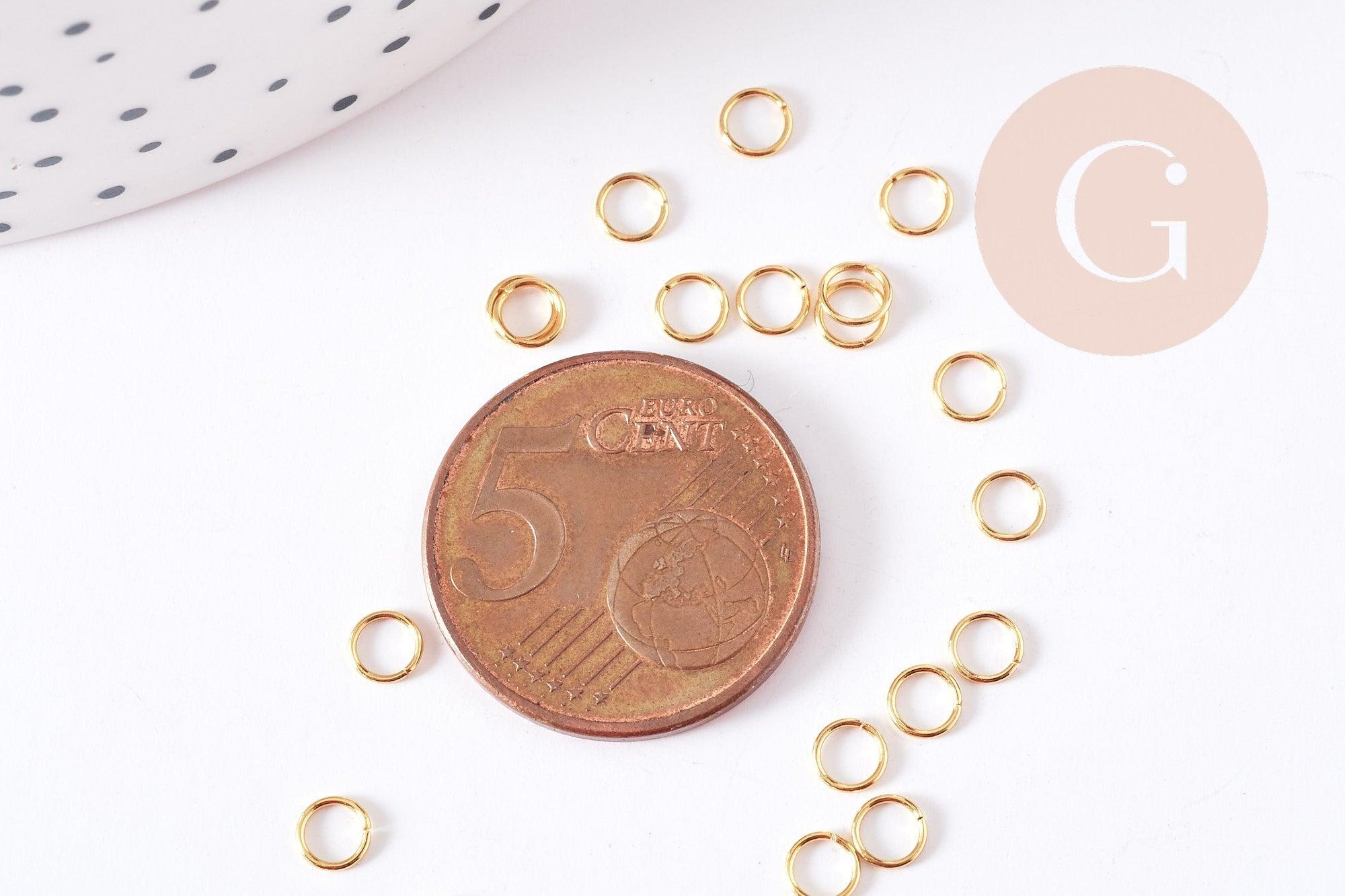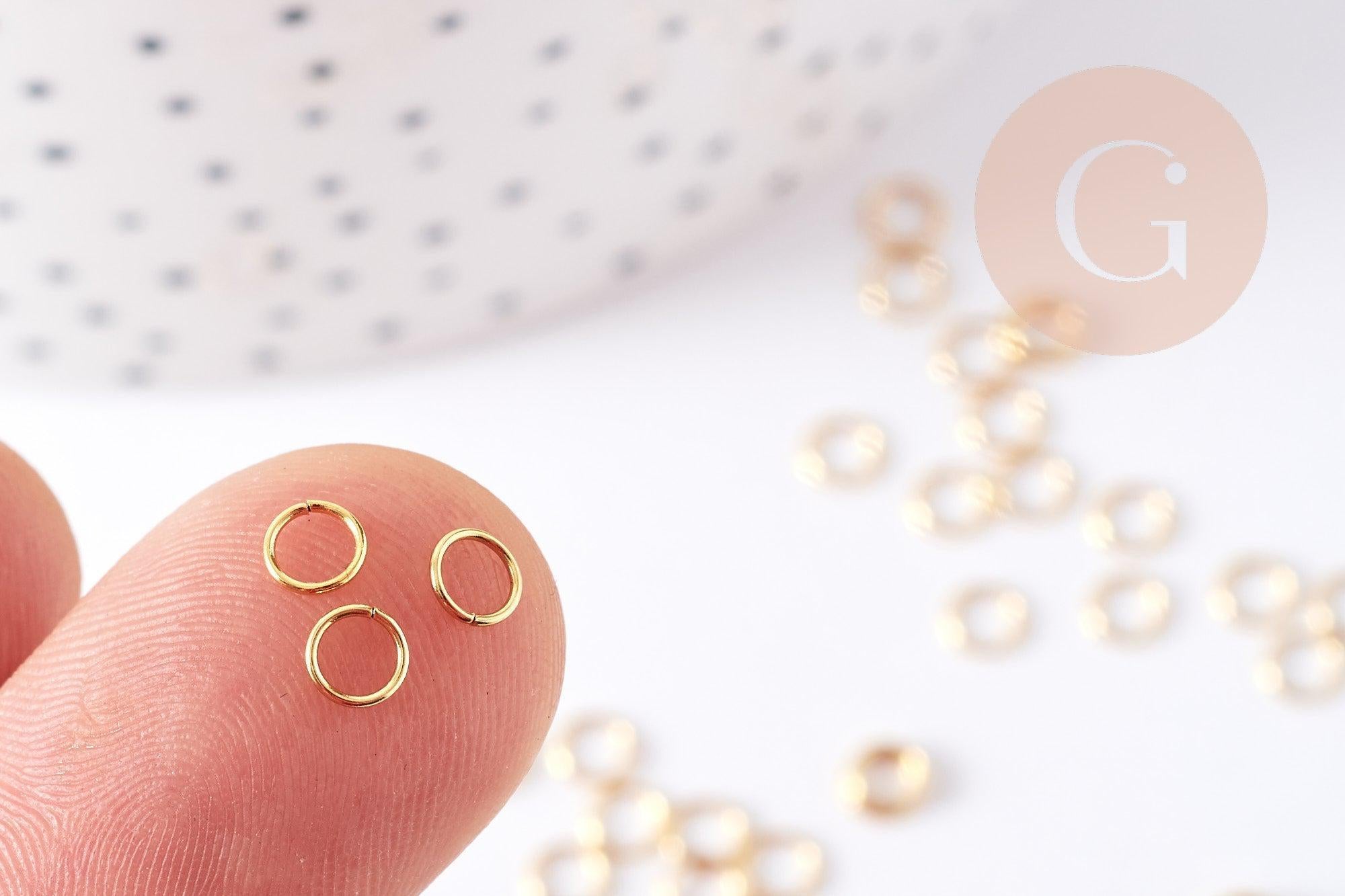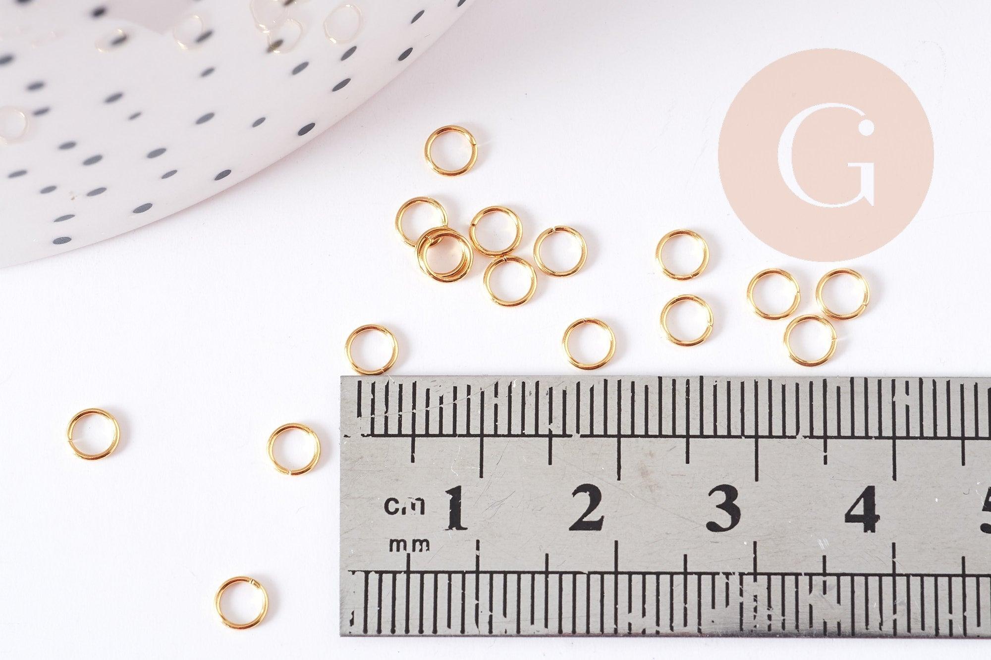 Agregue un toque de oro a sus diseños de joyería DIY con estos anillos de salto redondos de acero inoxidable ionizado en oro 304 de calibre 25 y 4 mm.