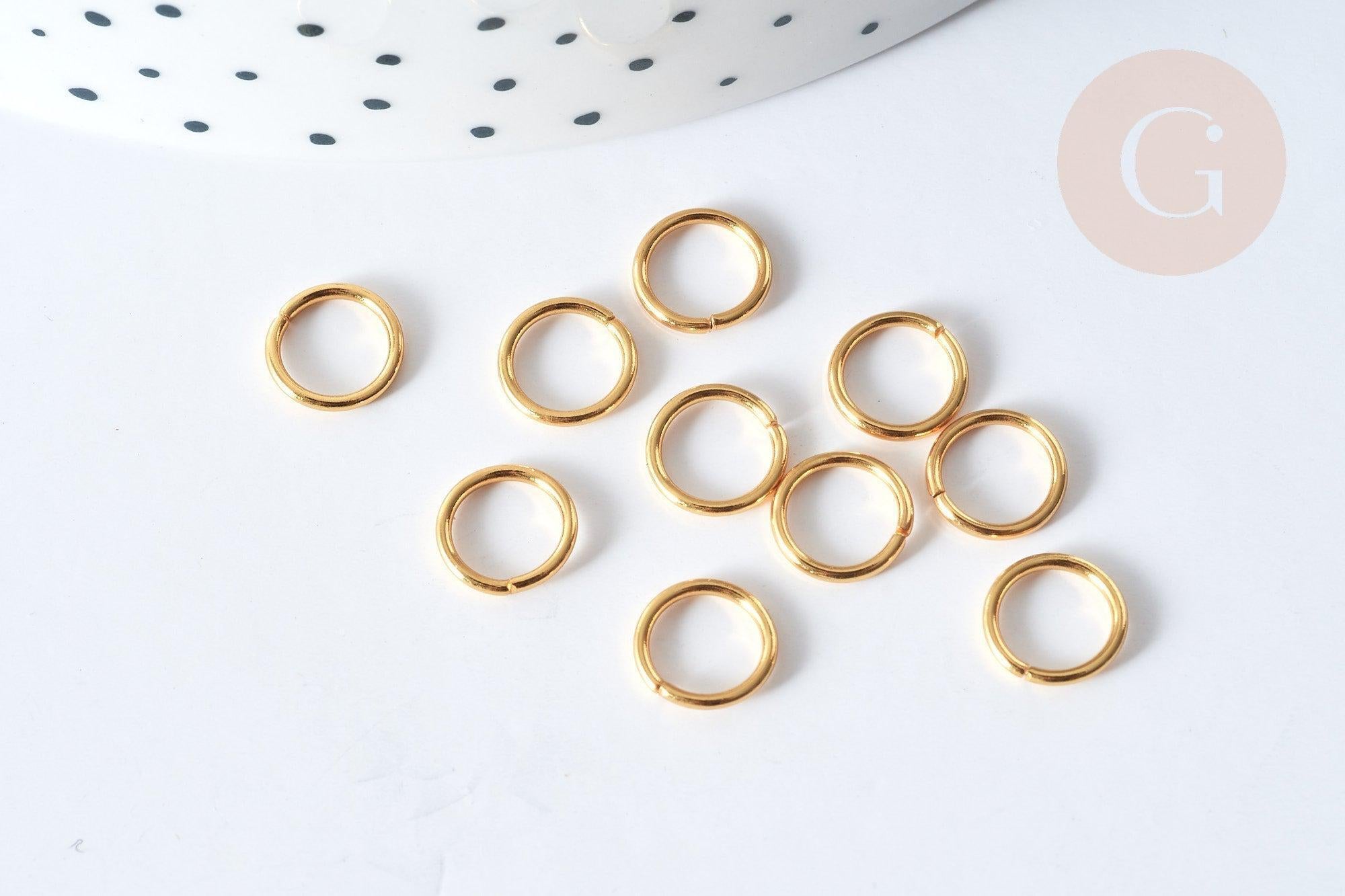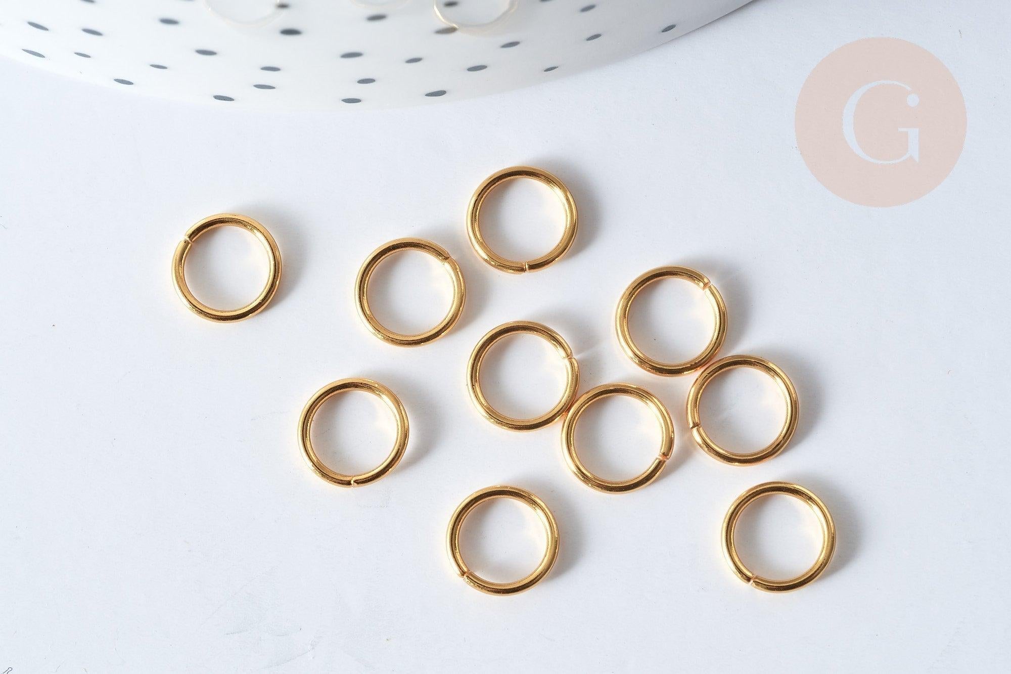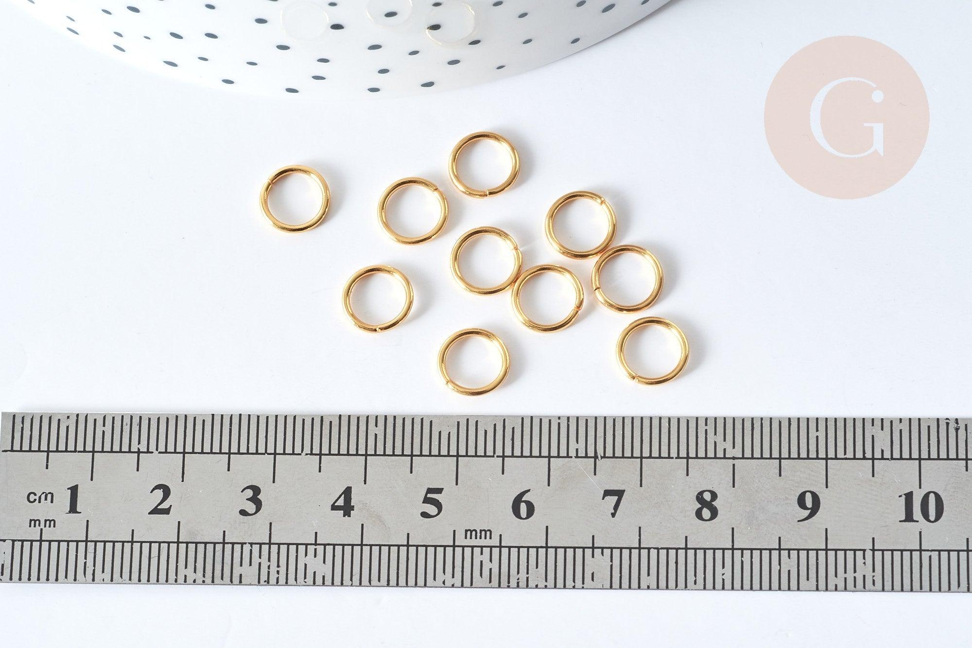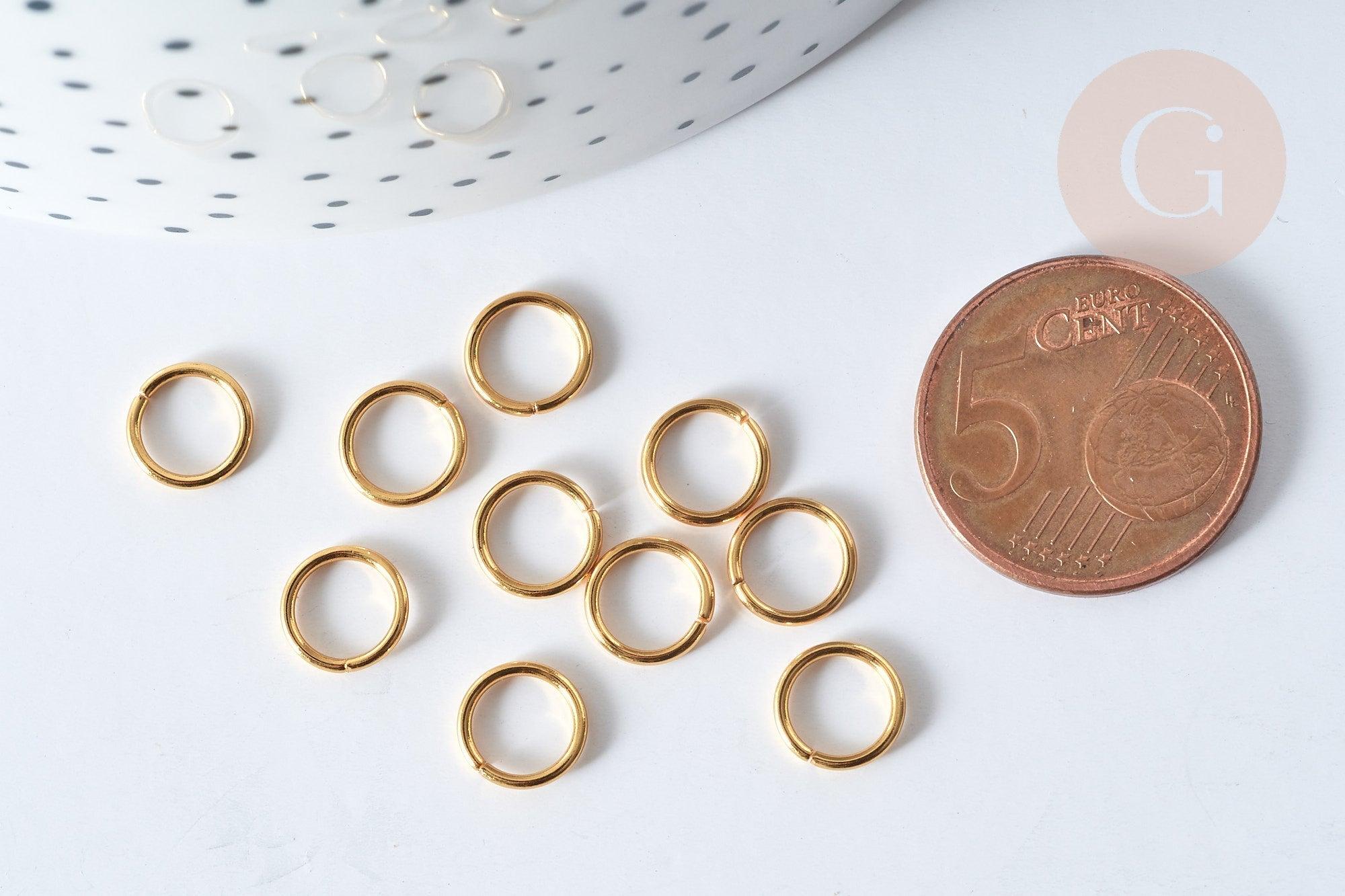 Anneaux ouverts ronds acier 304 inoxydable doré 8mm, x50 anneaux (G7711)