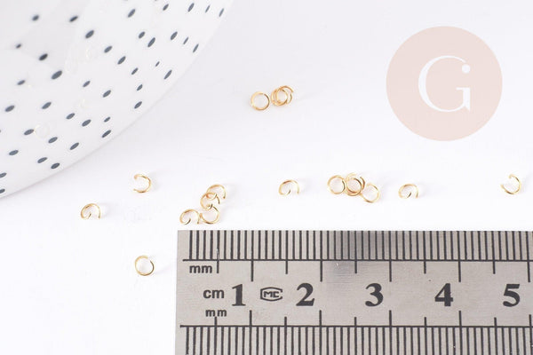 Anillos de salto redondos de 3 x 0,4 mm en acero inoxidable chapado en oro, suministros duraderos para la fabricación de joyas de bricolaje.