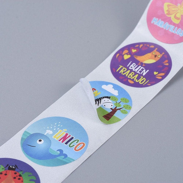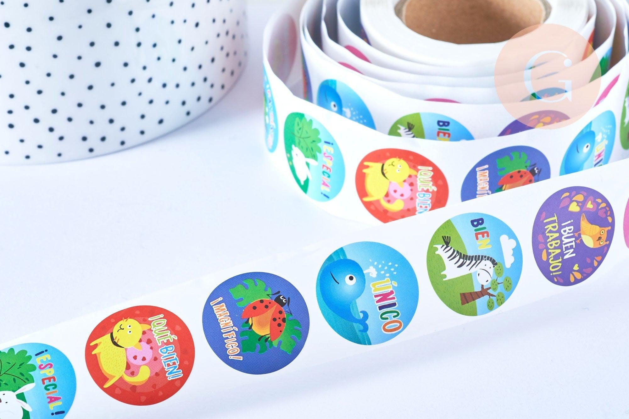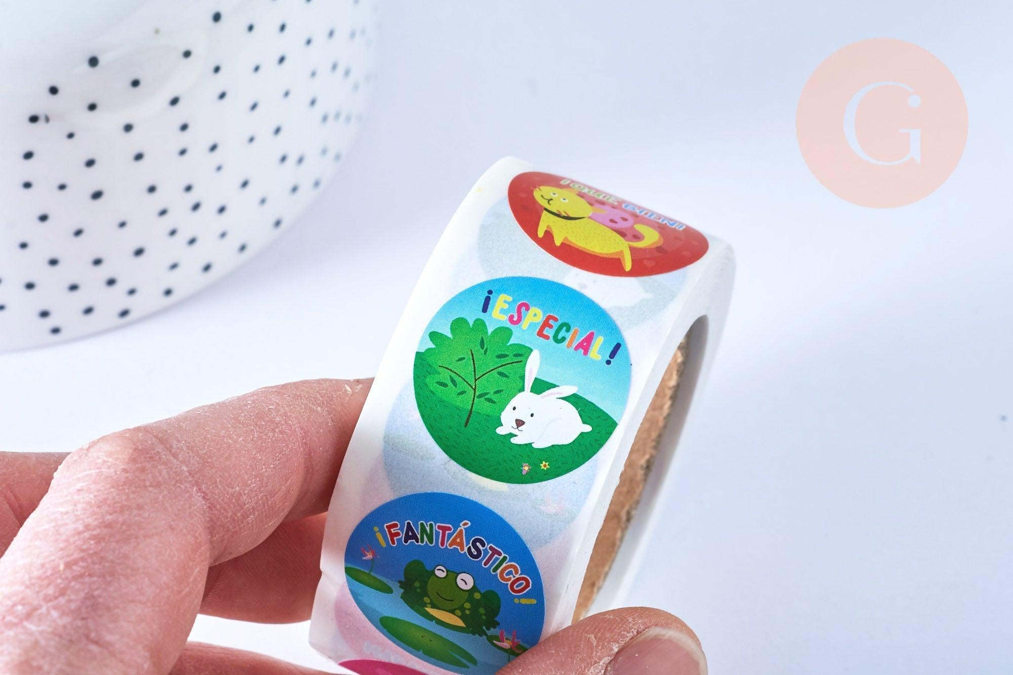 Pegatinas de ánimo para profesores de español, pegatinas para estudiantes, ánimo y reconocimiento a los estudiantes, rollo de 500 pegatinas Déjate seducir por estas coloridas pegatinas escritas en español como "Buen trabajo", "Bien" "Maravilloso" para animar y valorar a los...