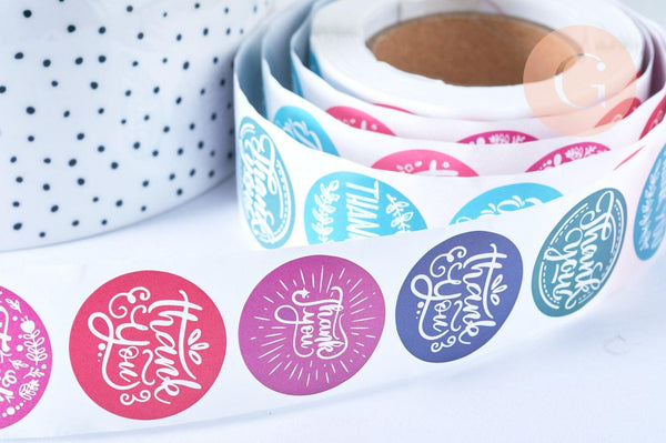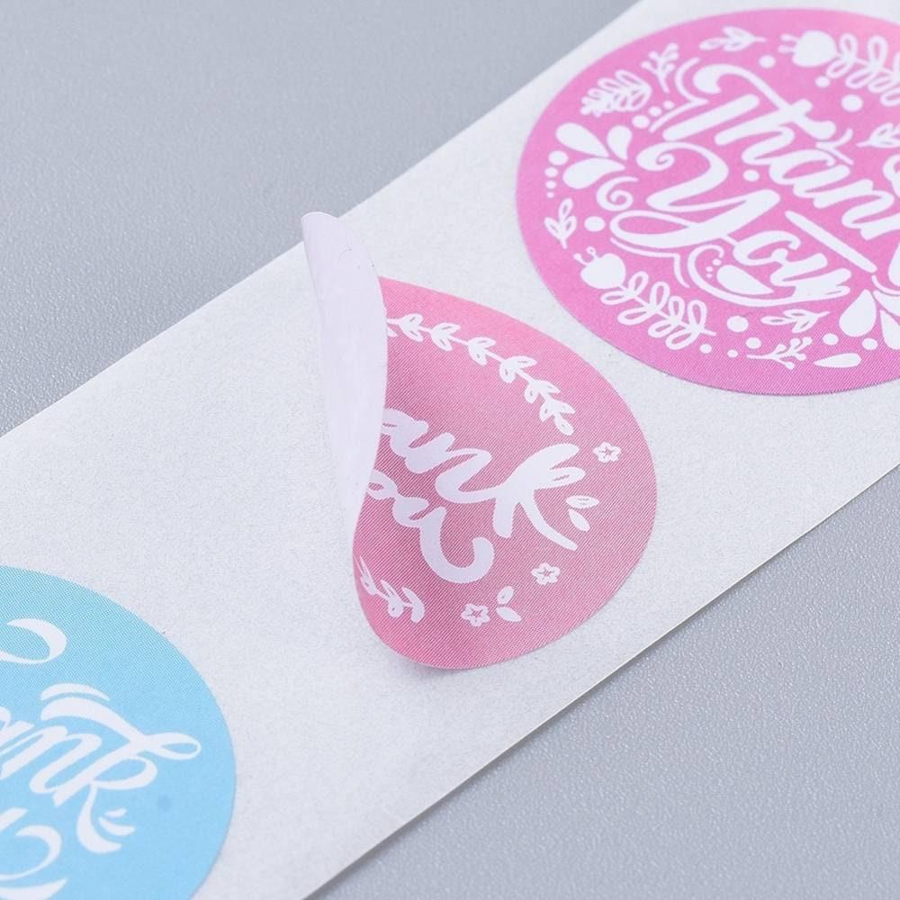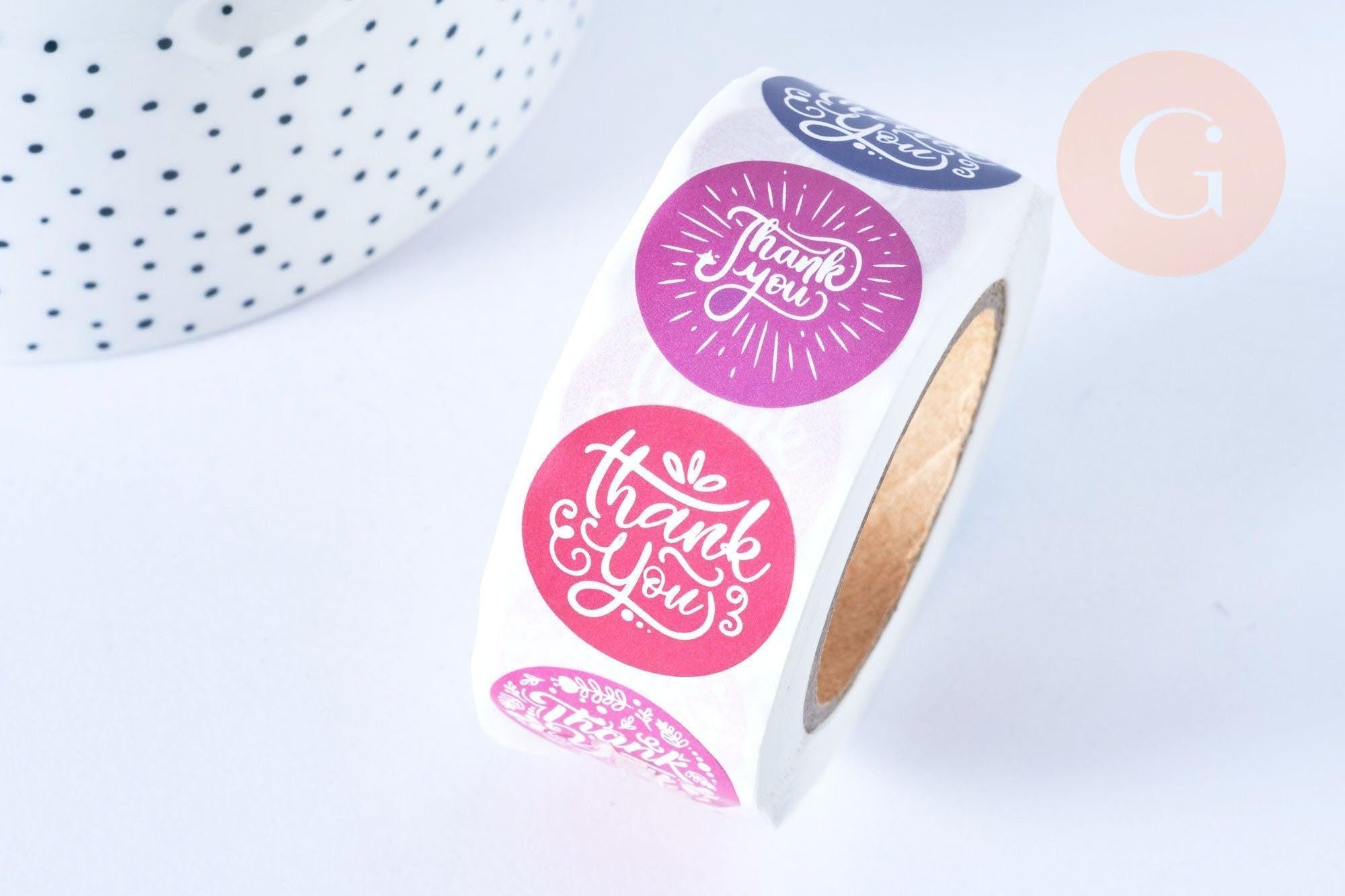 Pegatinas de agradecimiento, paquete de regalo de preparación rosa y azul, paquete de regalo, bolsa de boda, gracias, rollo de 500 pegatinas