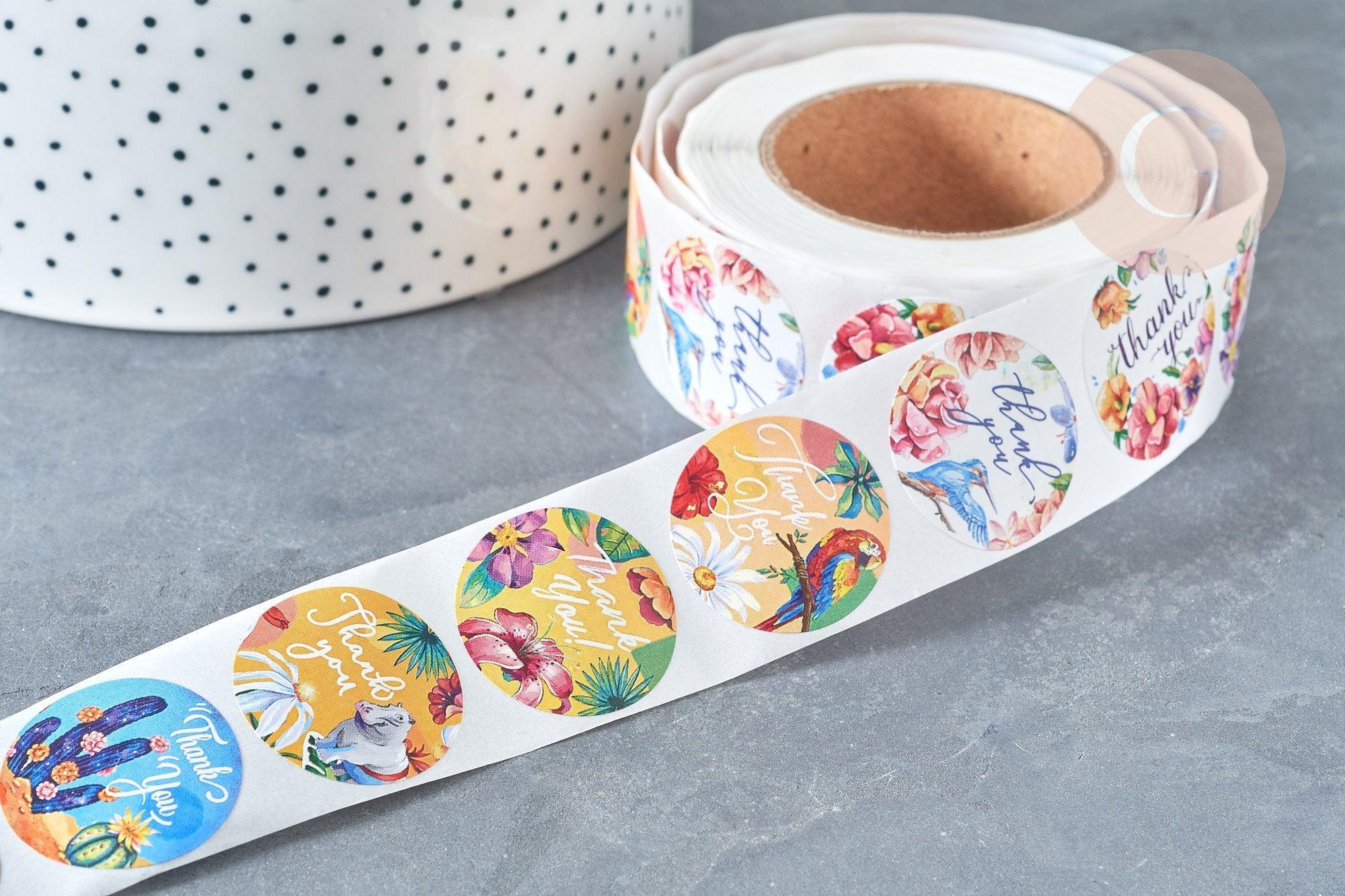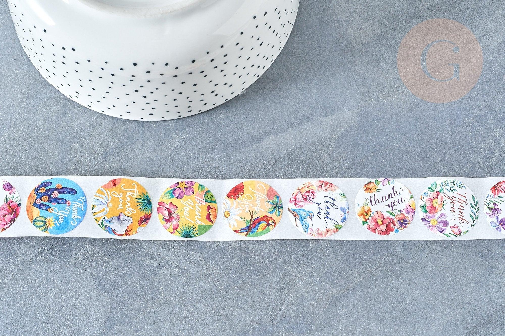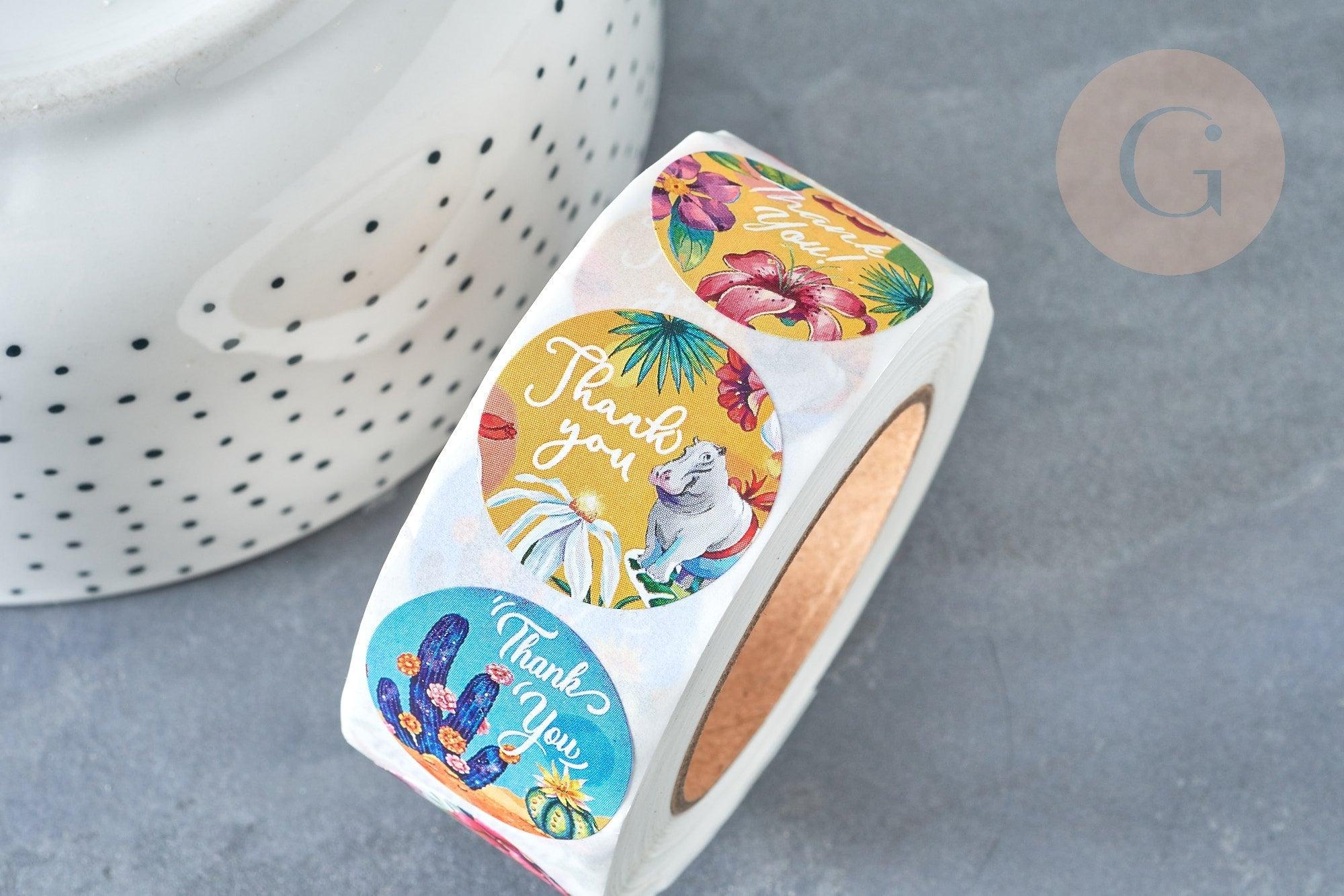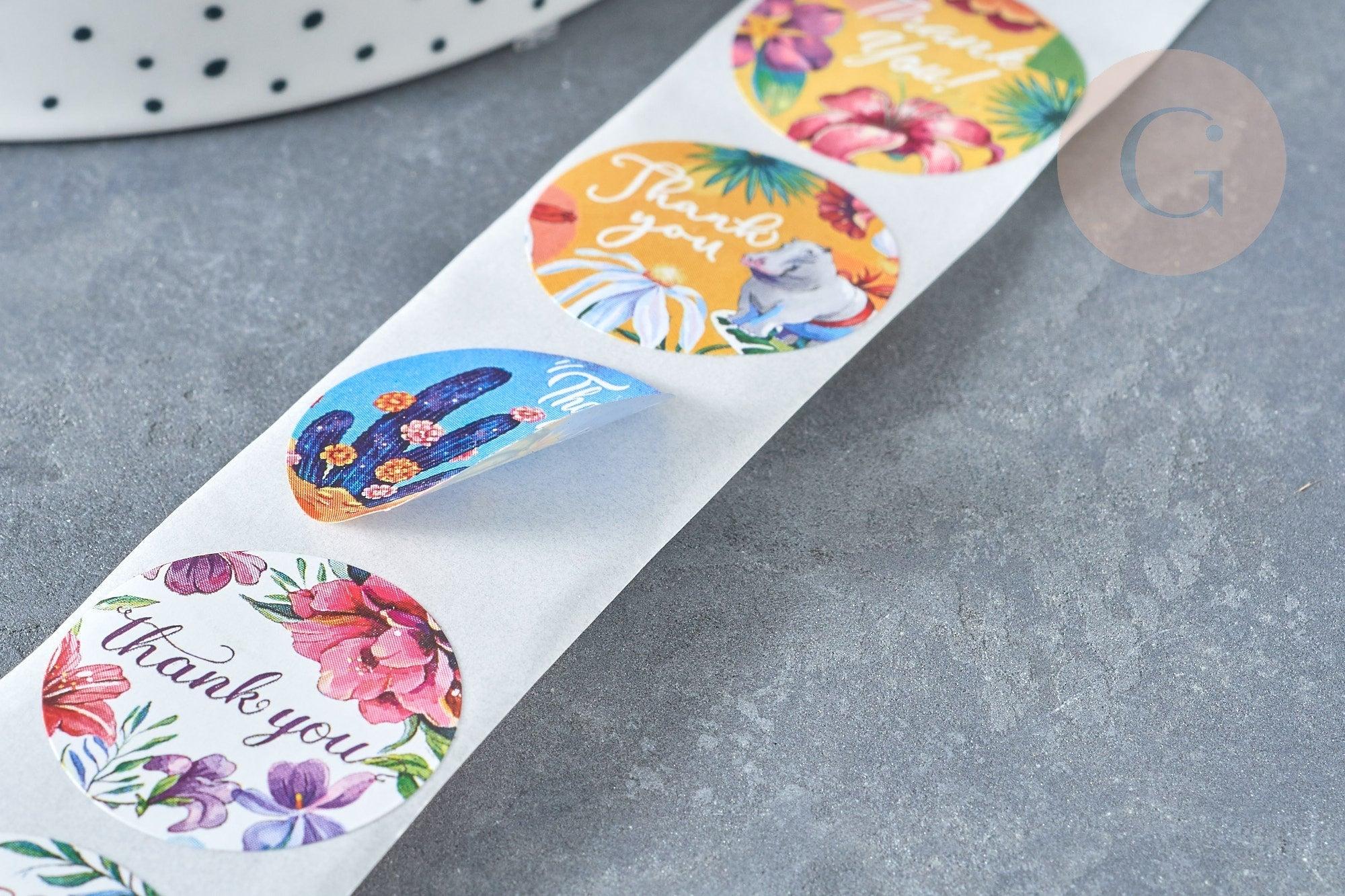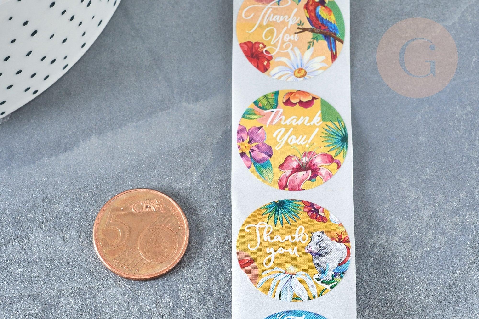 Si eres fan de las pegatinas te encantarán estas pegatinas redondas de agradecimiento con un diseño original, de temática tropical.
