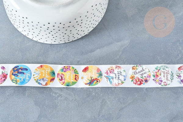 Para decorar tus paquetes, papeles, tarjetas, regalos pero también todas las superficies personalizables , este rollo de pegatinas será perfecto para agradecer a tus amigos y clientes.