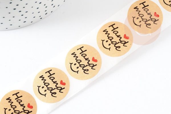 Déjate seducir por estas pegatinas kraft marrones "hechas a mano", para enviar tus pedidos o como agradecimiento, para decoración de fiestas o tus pequeños regalos de boda.