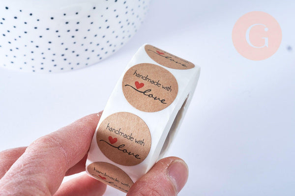 Hecho a mano con pegatinas de AMOR, preparación de paquete de regalo, embalaje de regalo, bolsa de boda, agradecimiento, rollo de 500 pegatinas