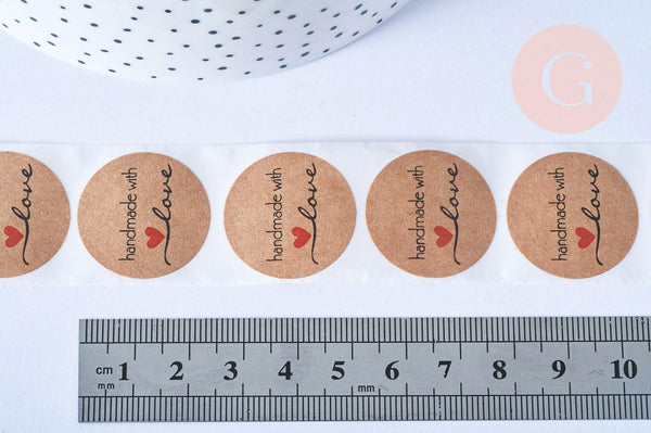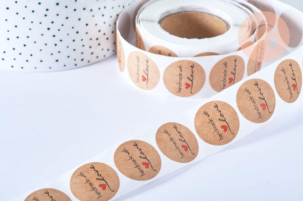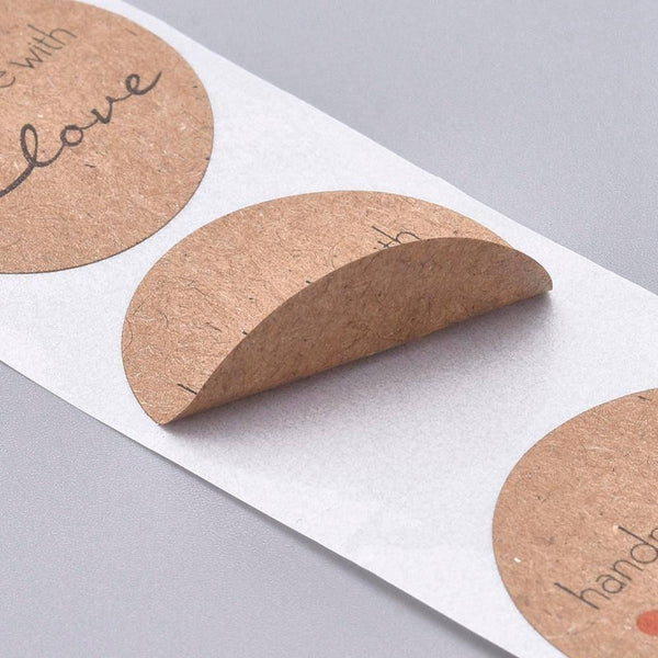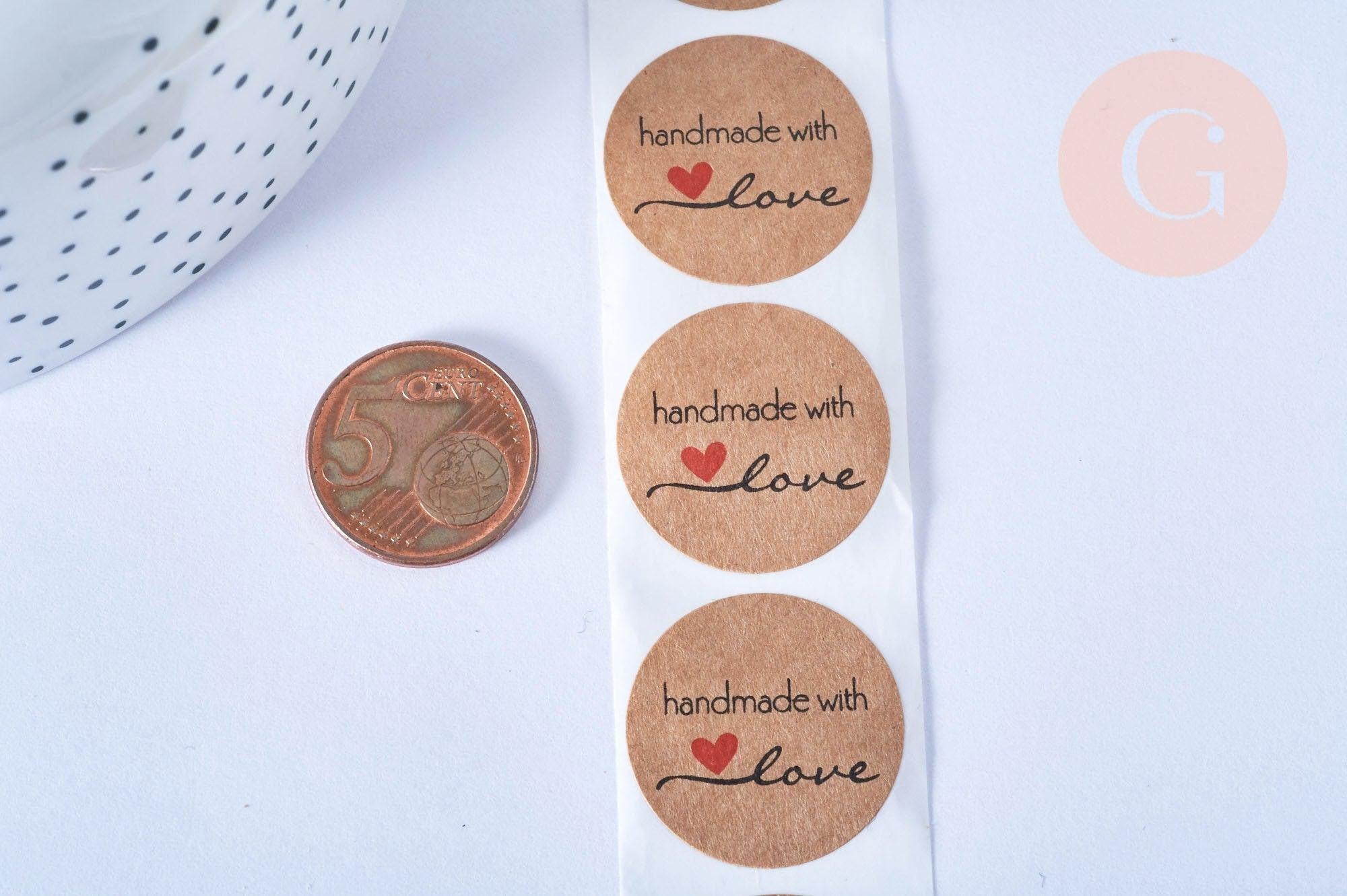 Déjese seducir por estas pegatinas kraft marrones "hechas a mano con AMOR" como agradecimiento o para decoración de fiestas o pequeños regalos de boda.