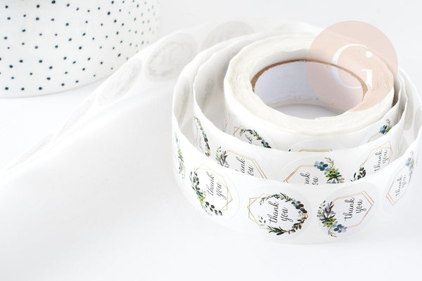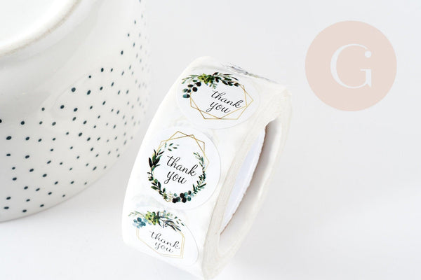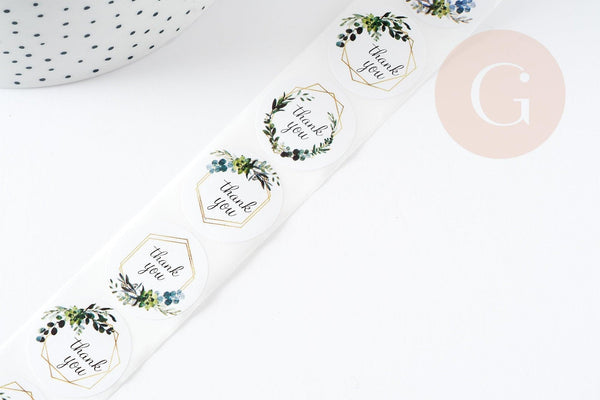 Enamórate de estas pegatinas con un adorable motivo vegetal “GRACIAS” como agradecimiento o para decoración de fiestas o pequeños regalos de boda.