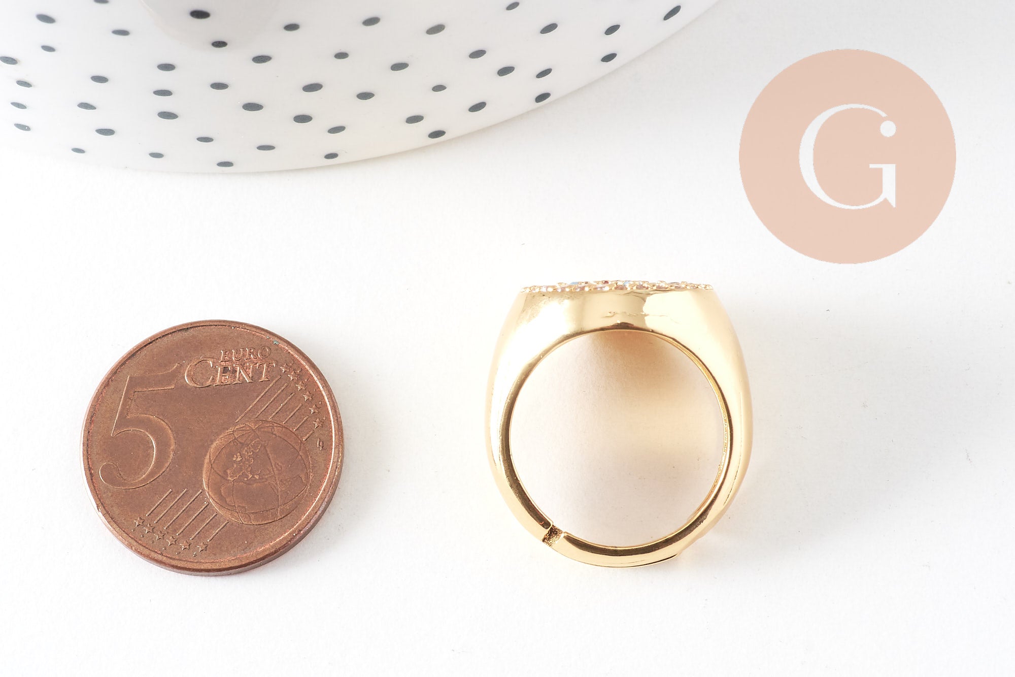 Anillo tipo sello con circonitas en oro latón 17mm,x1 (G4332)