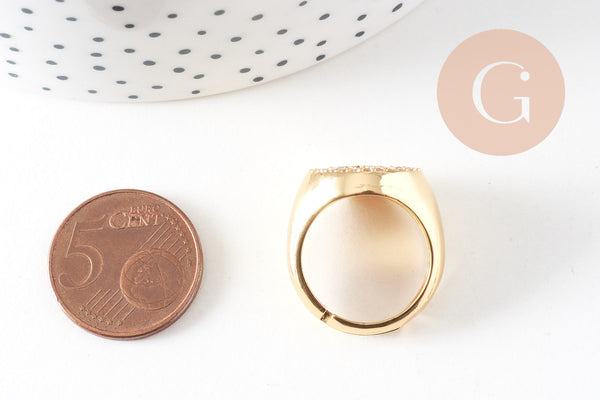 Bague chevalière laiton or zircon 17mm,x1 (G4332)