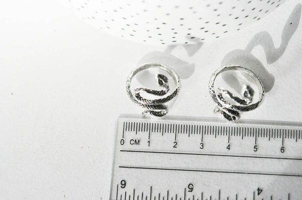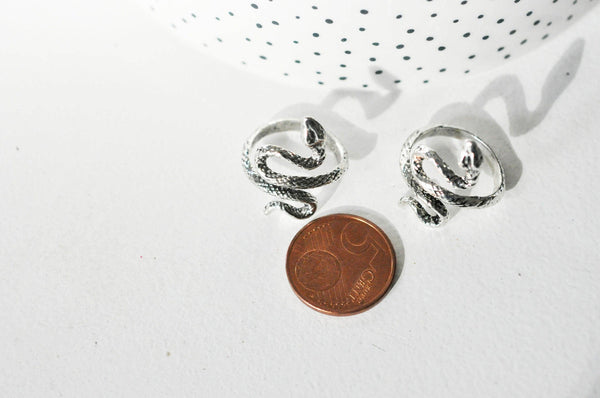 Precioso porta anillos regulable en metal zamac plateado con motivo trabajado en forma de serpiente.