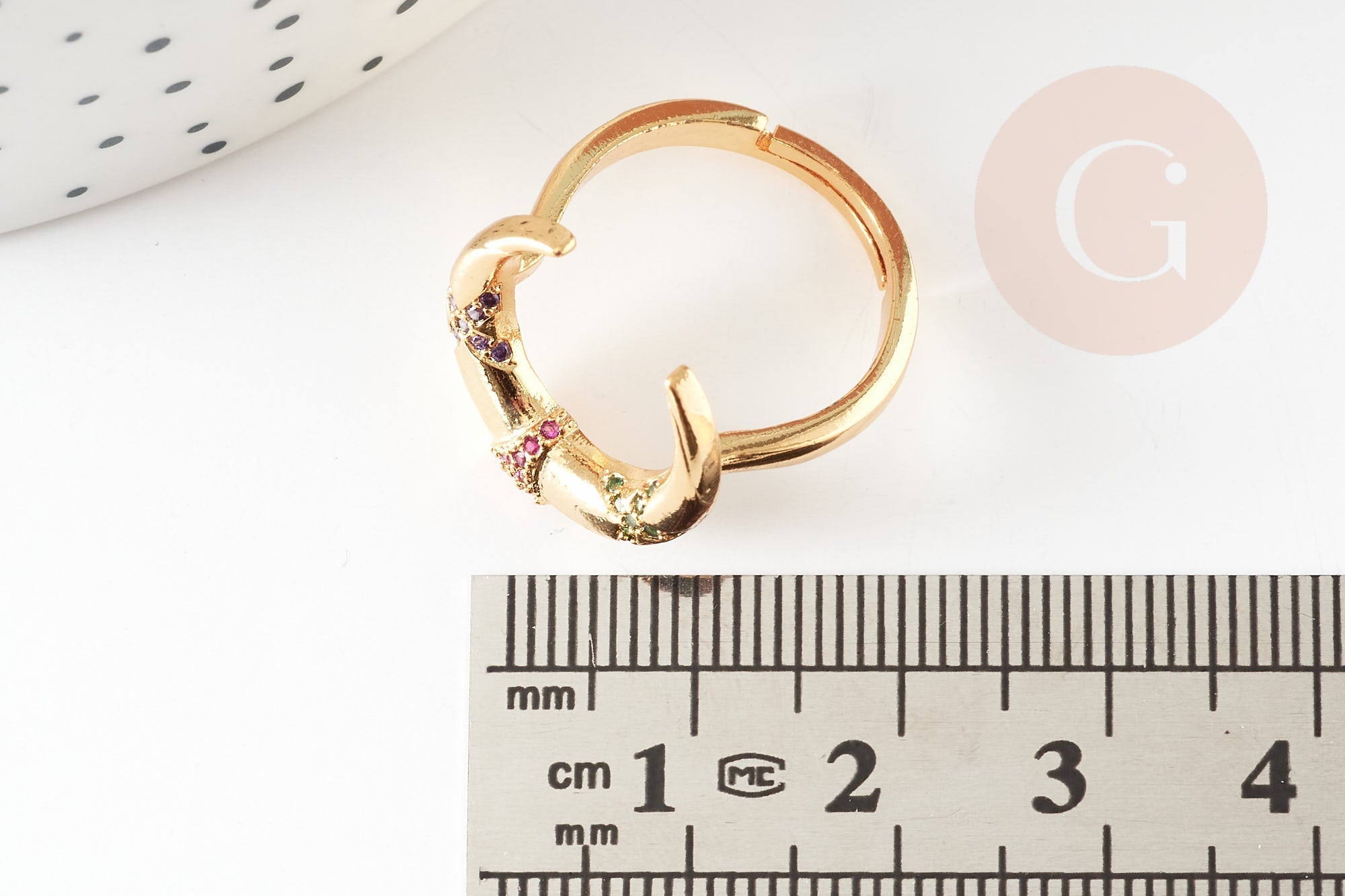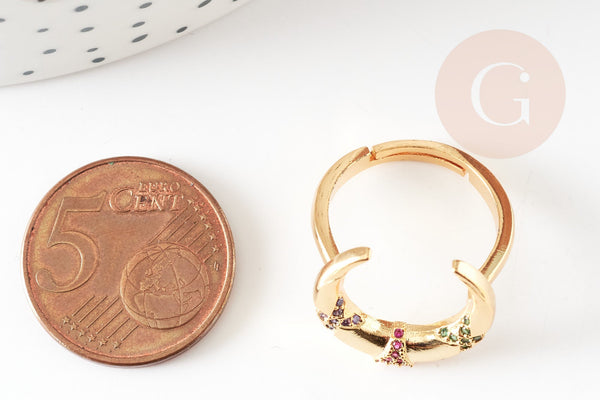 Anillo de latón bañado en oro con luna de circonitas de colores, creación de joyas, anillo de mujer regalo de cumpleaños, soporte de anillo de latón bañado en oro, 16,5 mm, unidad