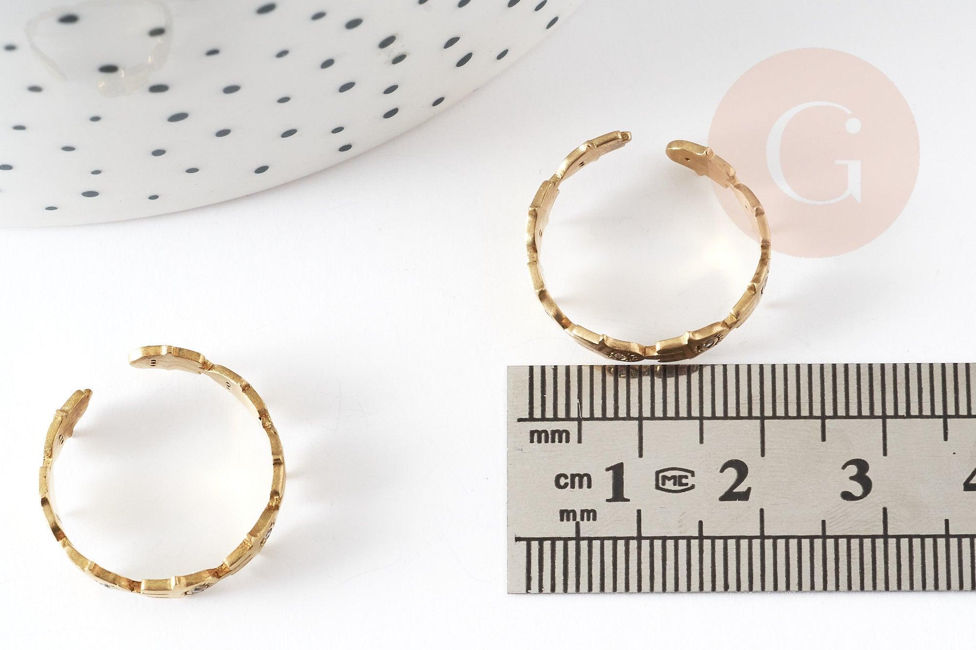 Un muy bonito porta anillos ajustable en latón en bruto compuesto por las manos de fatma con incrustaciones de un cristal en cada una de ellas.