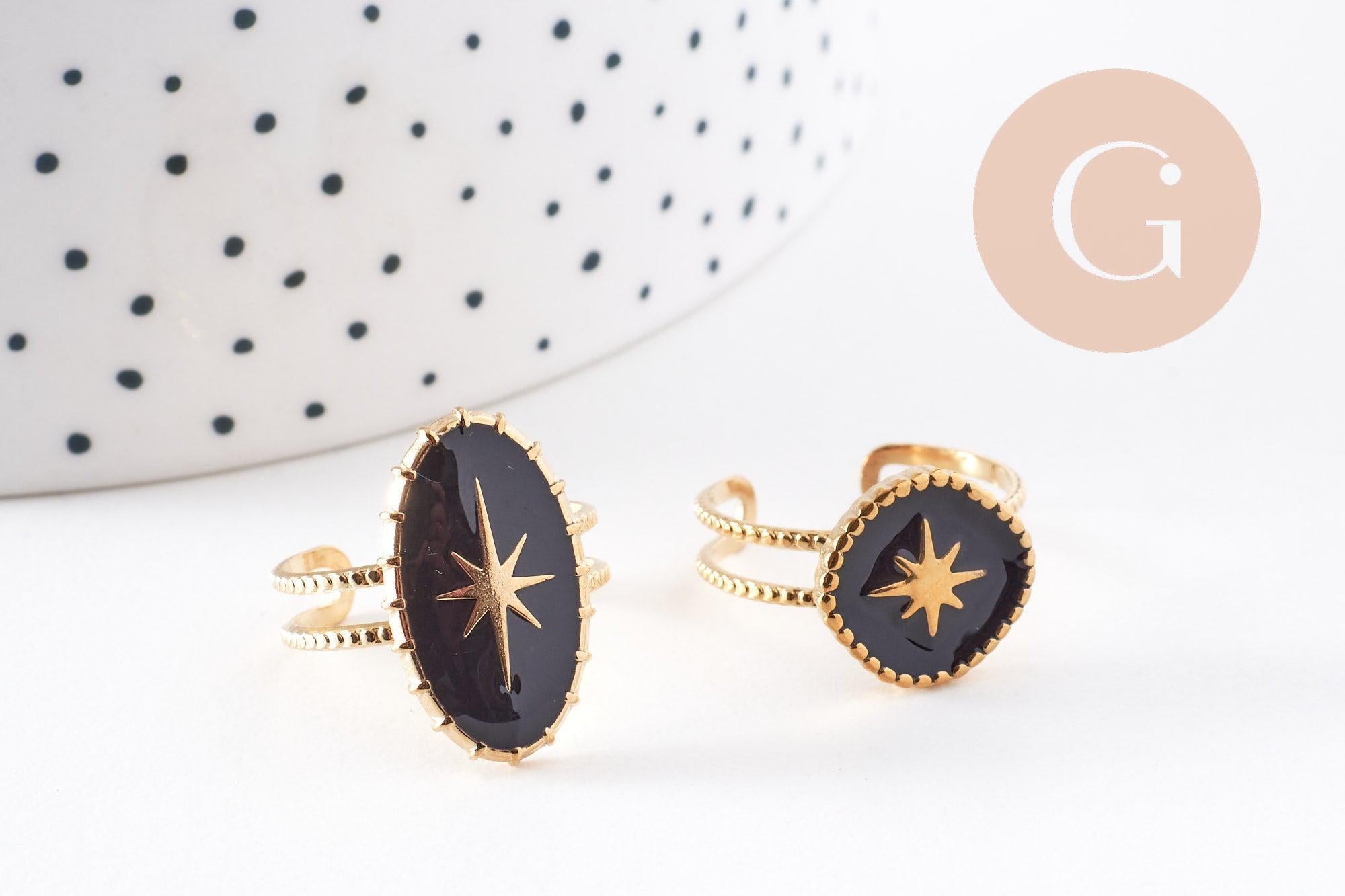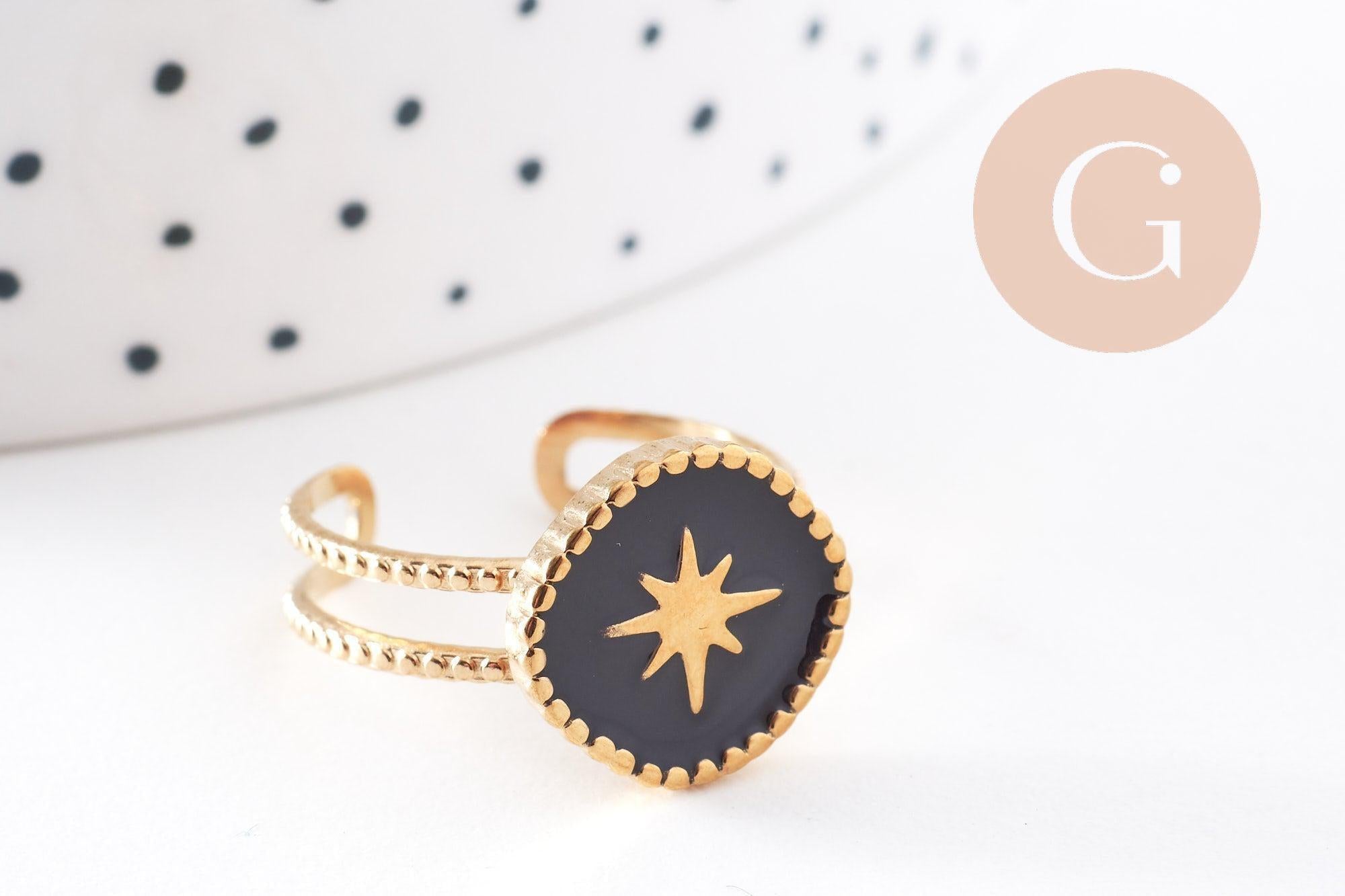 Este fino anillo de acero bañado en oro es una pieza de joyería atemporal y muy chic para mujer. Con su diseño único, está decorado con un patrón de esmalte negro con una decoración de estrella dorada , agregando un toque de sofisticación a cualquier atuendo.