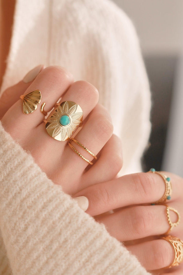 Este anillo doble ajustable es una elegante y moderna pieza de joyería para mujer, elaborado en acero inoxidable 304 bañado en oro . Con su acabado ionizado de primera calidad, este anillo es resistente al agua, al sudor y a la decoloración , lo que lo convierte en una opción duradera y práctica para el uso diario.