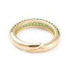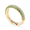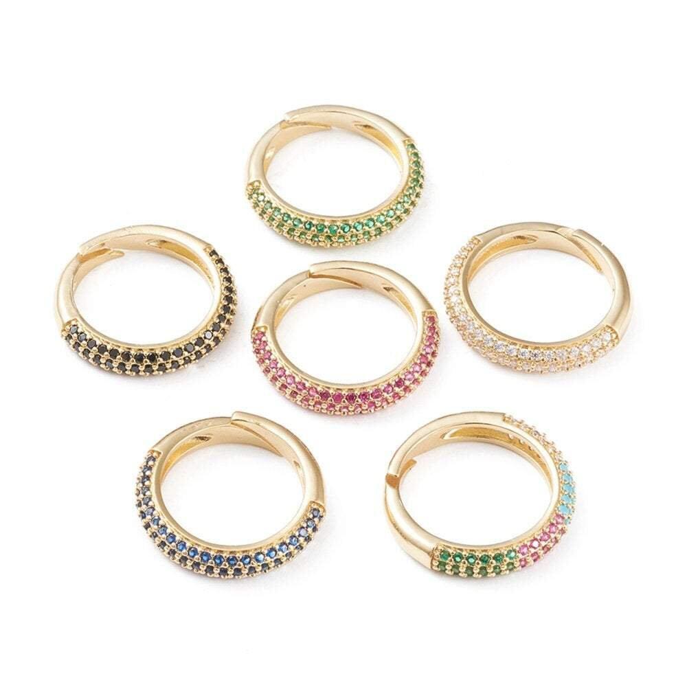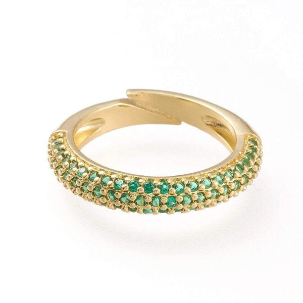 Un precioso anillo de latón bañado en oro decorado con circonitas de colores.