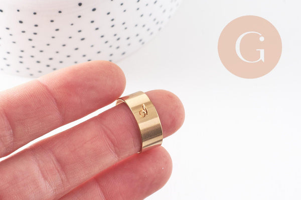 Bague réglable personnalisable acier 304 doré inoxydable 18K avec anneau 8mm, x2 (G9863)