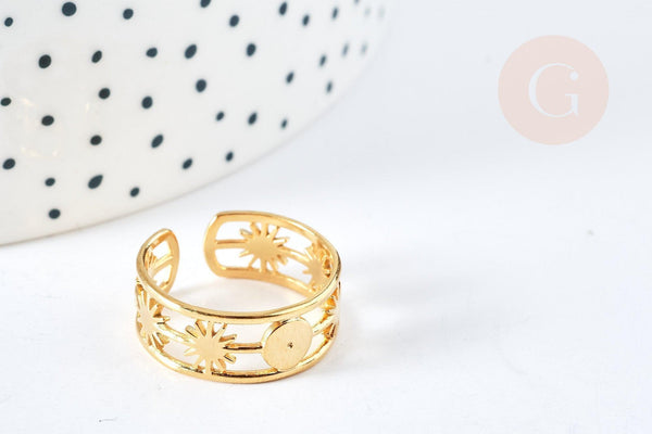 El anillo ajustable de sol en acero inoxidable 304 IP chapado en oro es una joya elegante y radiante para mujer. Este anillo está hecho de acero inoxidable 304 chapado en oro y cuenta con un acabado iónico de primera calidad, que le proporciona mayor resistencia al agua, al sudor y a la decoloración. Por lo tanto, es duradero y práctico para el día a día.