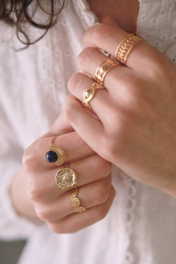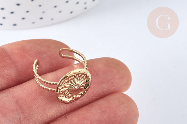 Anillo ajustable con circonita sol, acero inoxidable 304, baño de oro, 304 Talla 54, x1 (G7016)
