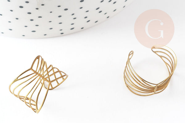 Un soporte para anillos muy bonito en latón en bruto con un corte geométrico muy moderno.