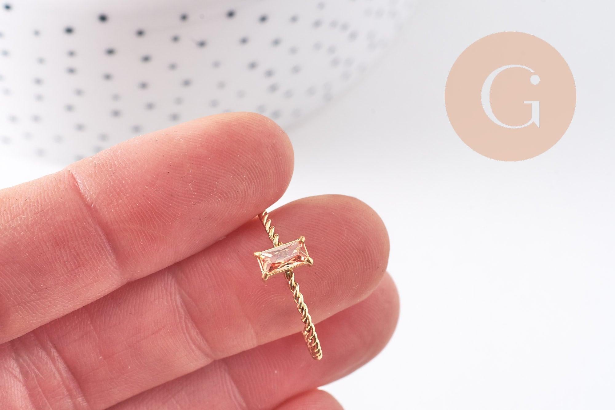 Anillo solitario de circonita rectangular rosa melocotón en acero inoxidable 304 dorado, x1 (G10360)