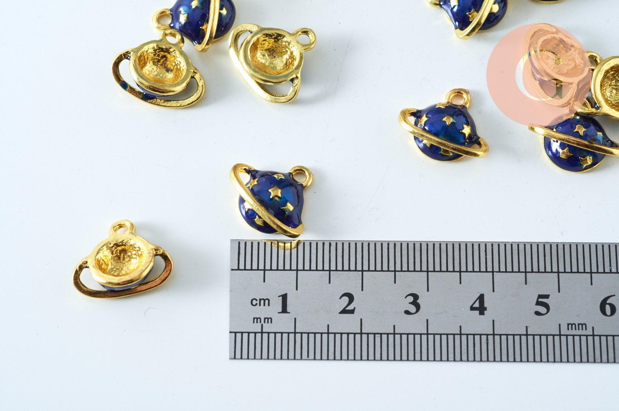 Colgante bola planeta estrellas esmalte azul zamac oro 13mm, colgante de latón esmaltado, sin níquel, x1 G6006