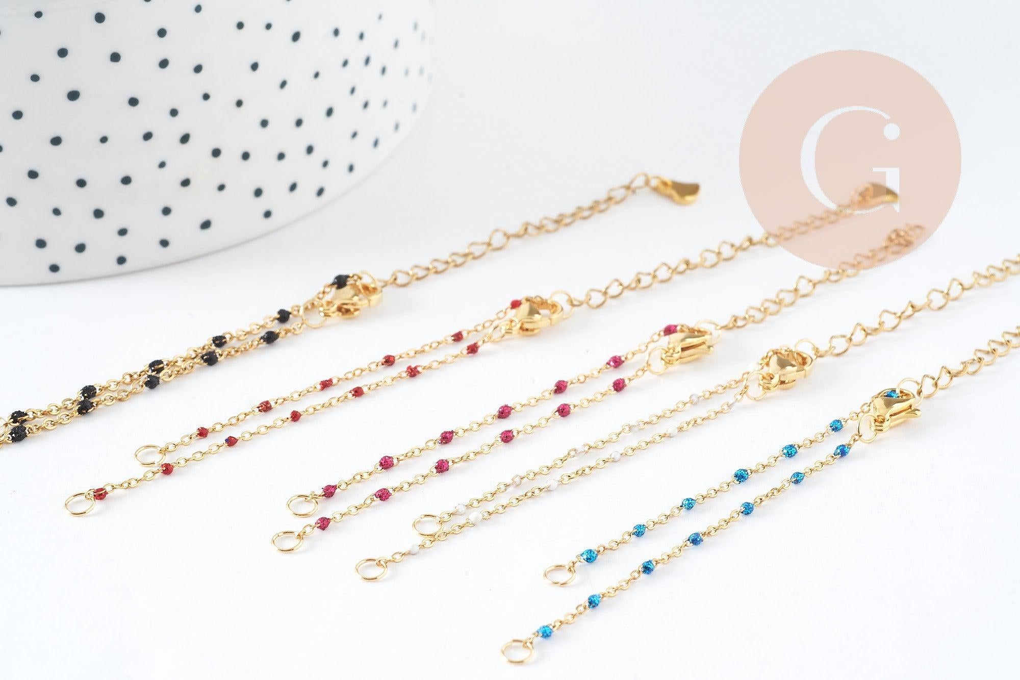 Estas bases de pulsera están hechas de acero inoxidable 304 decoradas con cuentas de resina de colores.