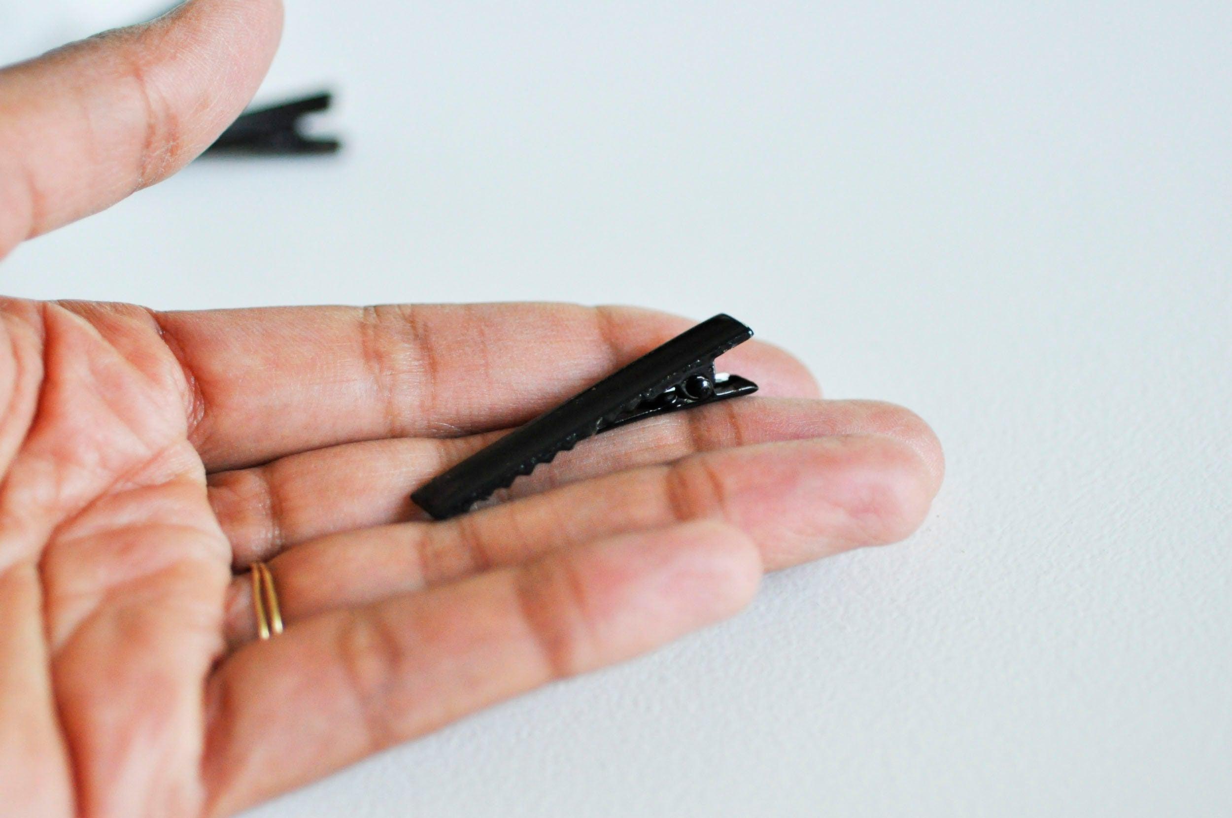Soportes de pasador de metal negro sin bandeja, suministros creativos, pinza de cocodrilo, accesorios para el cabello, fabricación de joyas, juego de 2, 4 cm Un juego de 2 soportes para pasadores de metal negro, que se adoptarán inmediatamente para...
