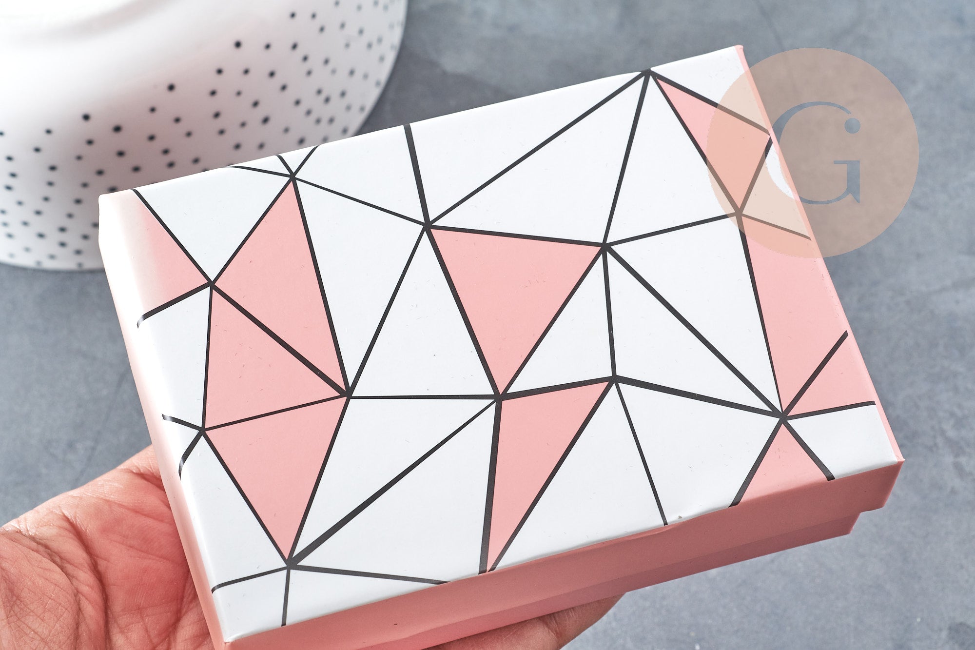EP-Caja de regalo Joyero de cartón rosa con estampado geométrico 11,2 x 8,05 cm (G8956)
