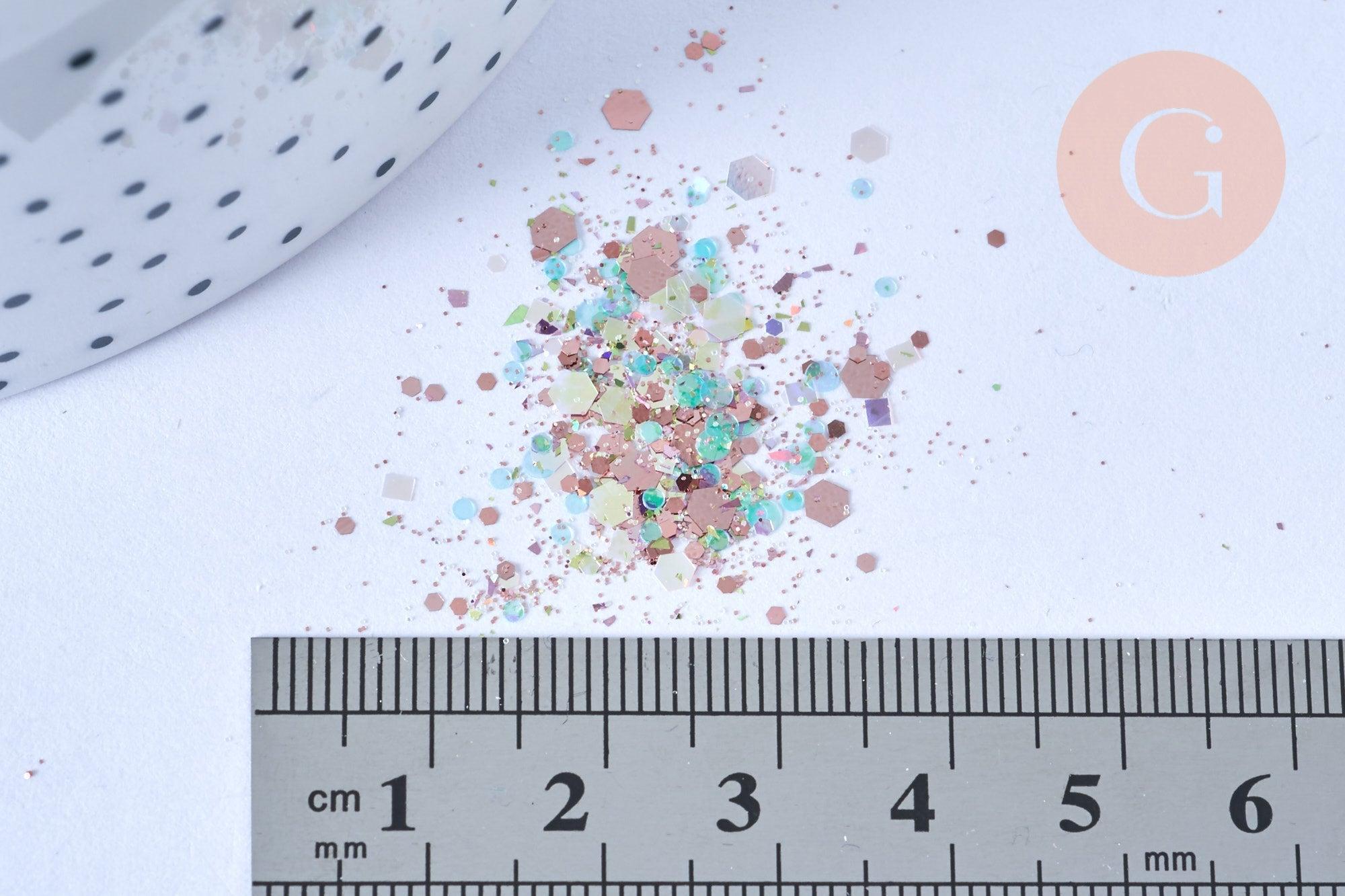Caja de purpurina holográfica para nail art para inclusión en resina o creación de arcilla polimérica, x1 caja de 0,3 gr (G6855)