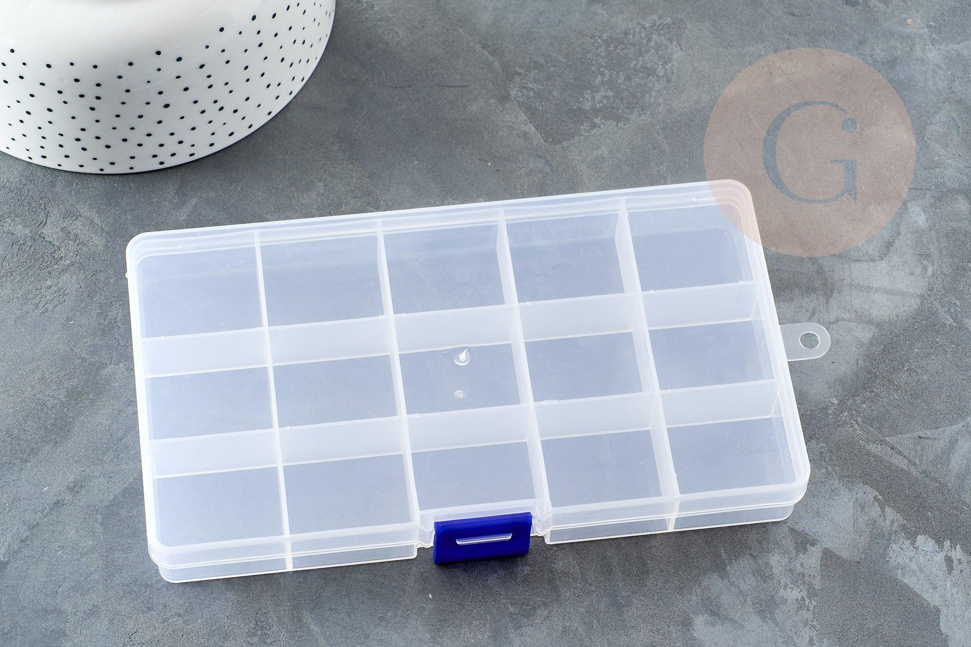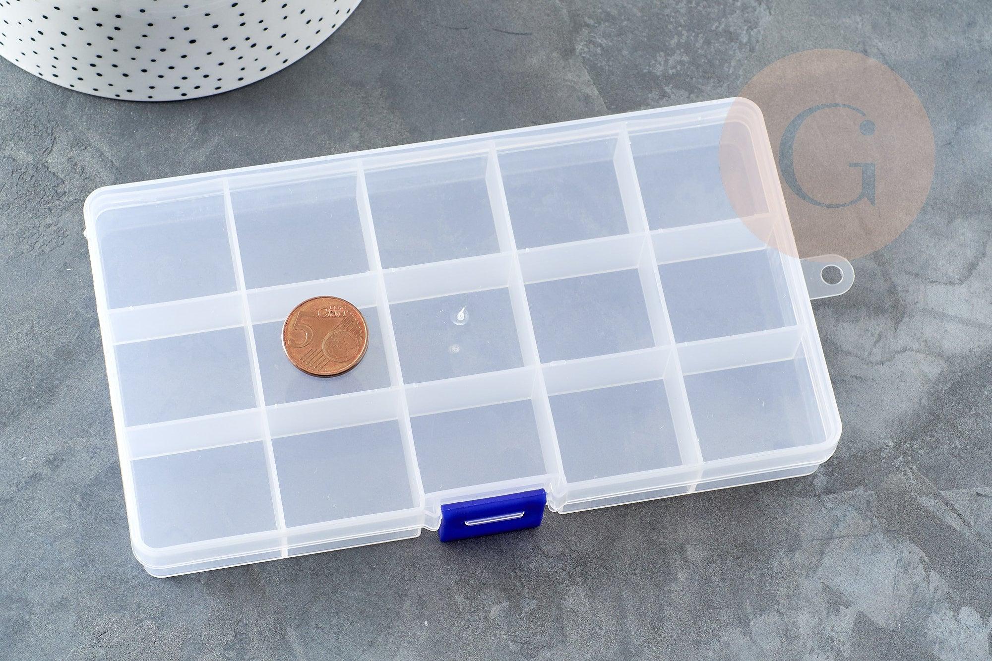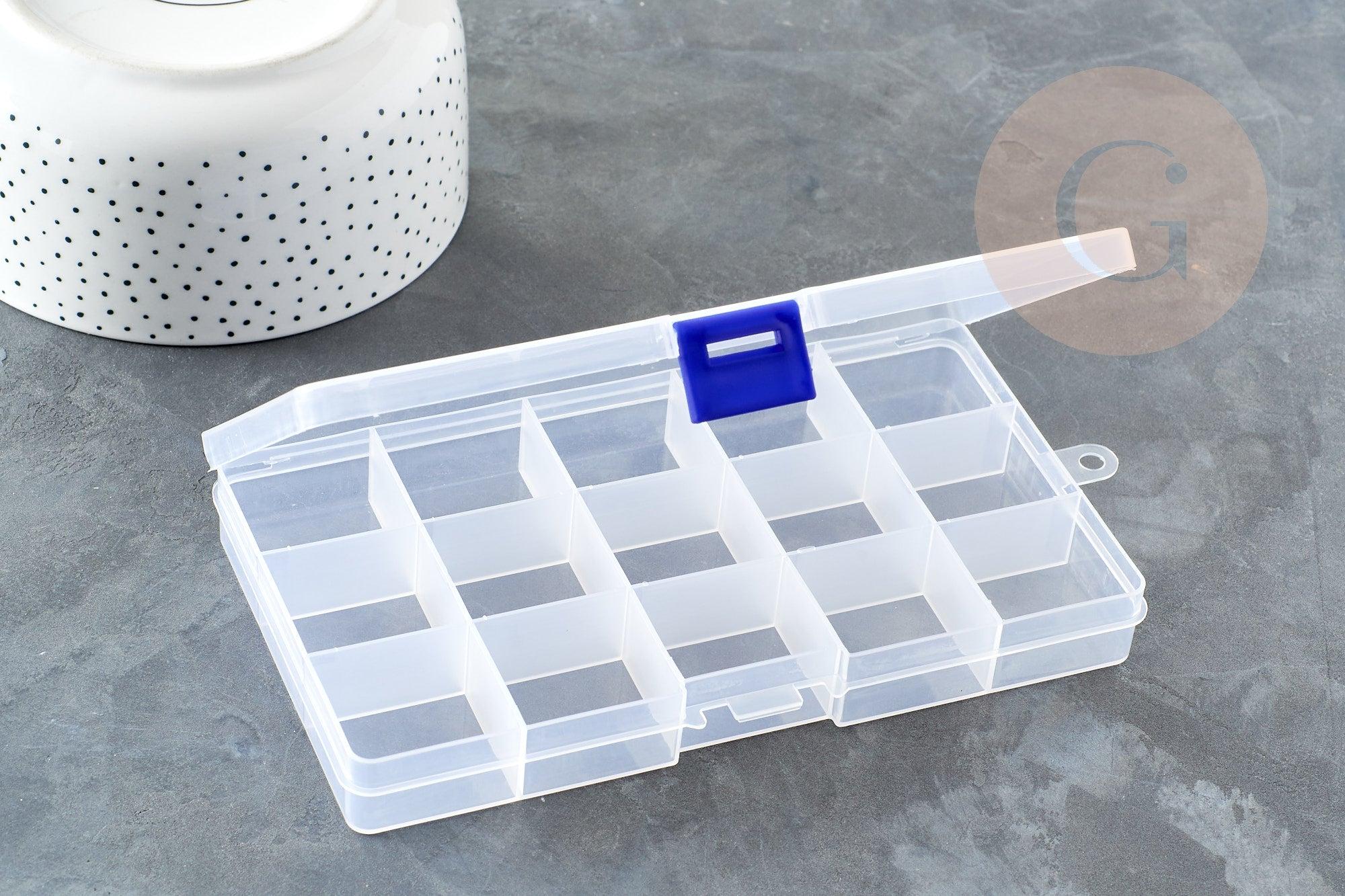 Organiza fácilmente tus cuentas, accesorios y dijes con esta caja de plástico transparente . Su práctico tamaño y compartimentos modulares la convierten en la compañera perfecta para quienes diseñan joyas DIY.