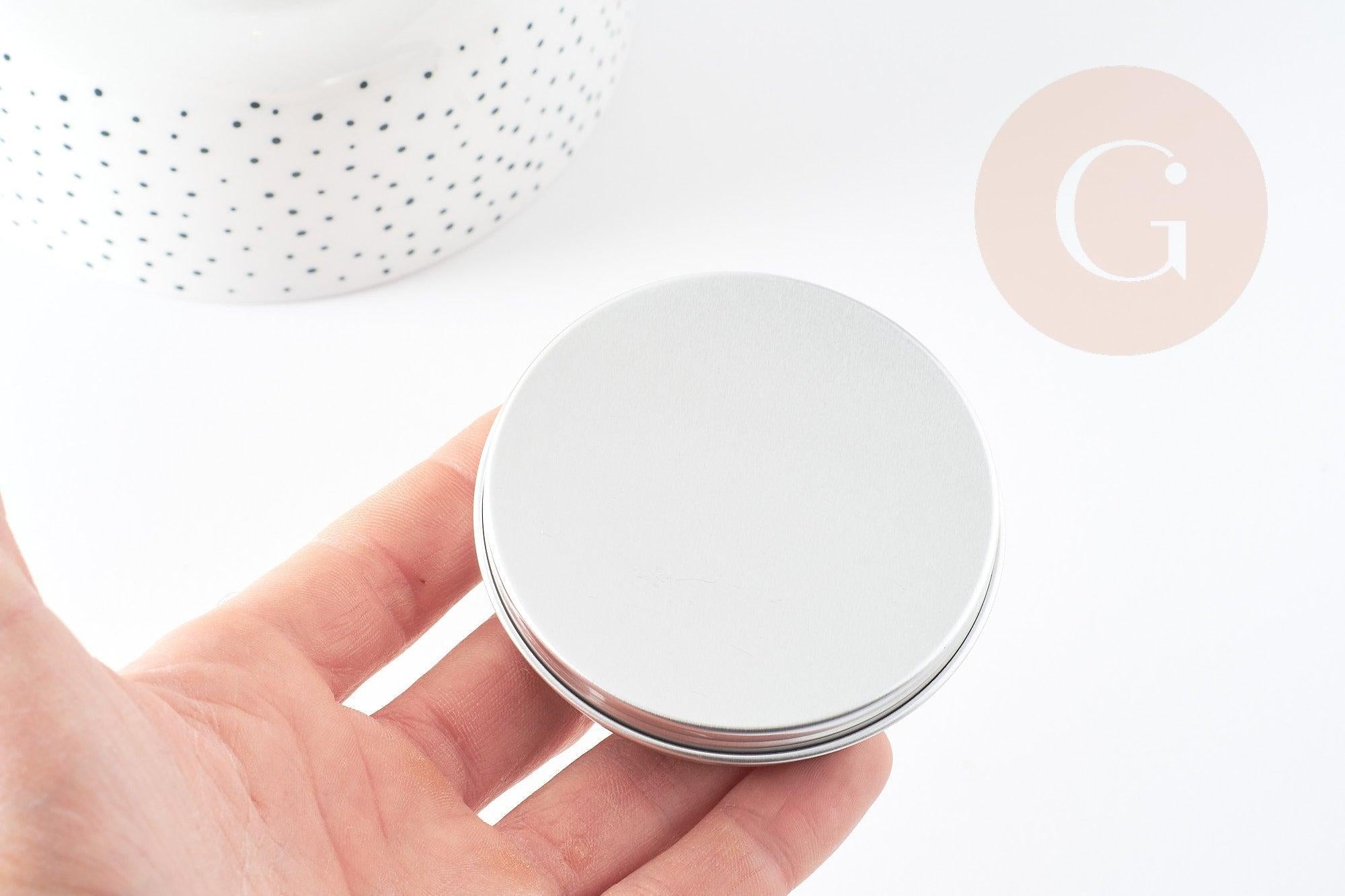 Déjate seducir por esta elegante caja redonda de aluminio platino , imprescindible para todas tus actividades creativas. Con su tapa de rosca segura , es ideal para proteger del polvo tus cuentas, joyas, cosméticos caseros, velas o pequeños accesorios de bricolaje .